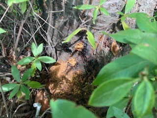 幼虫が入り込んだ樹木からは、大量のフラス(幼虫のフンと木くずが混ざったもの)が排出され、食害が進むと、枝が落ちたり木が倒れたりするおそれがあります。