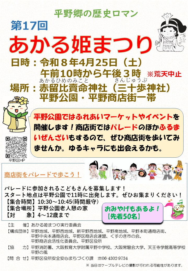 今年も「第17回あかる姫まつり」を開催しますので、ご家族やお友達と一緒にぜひご参加ください!