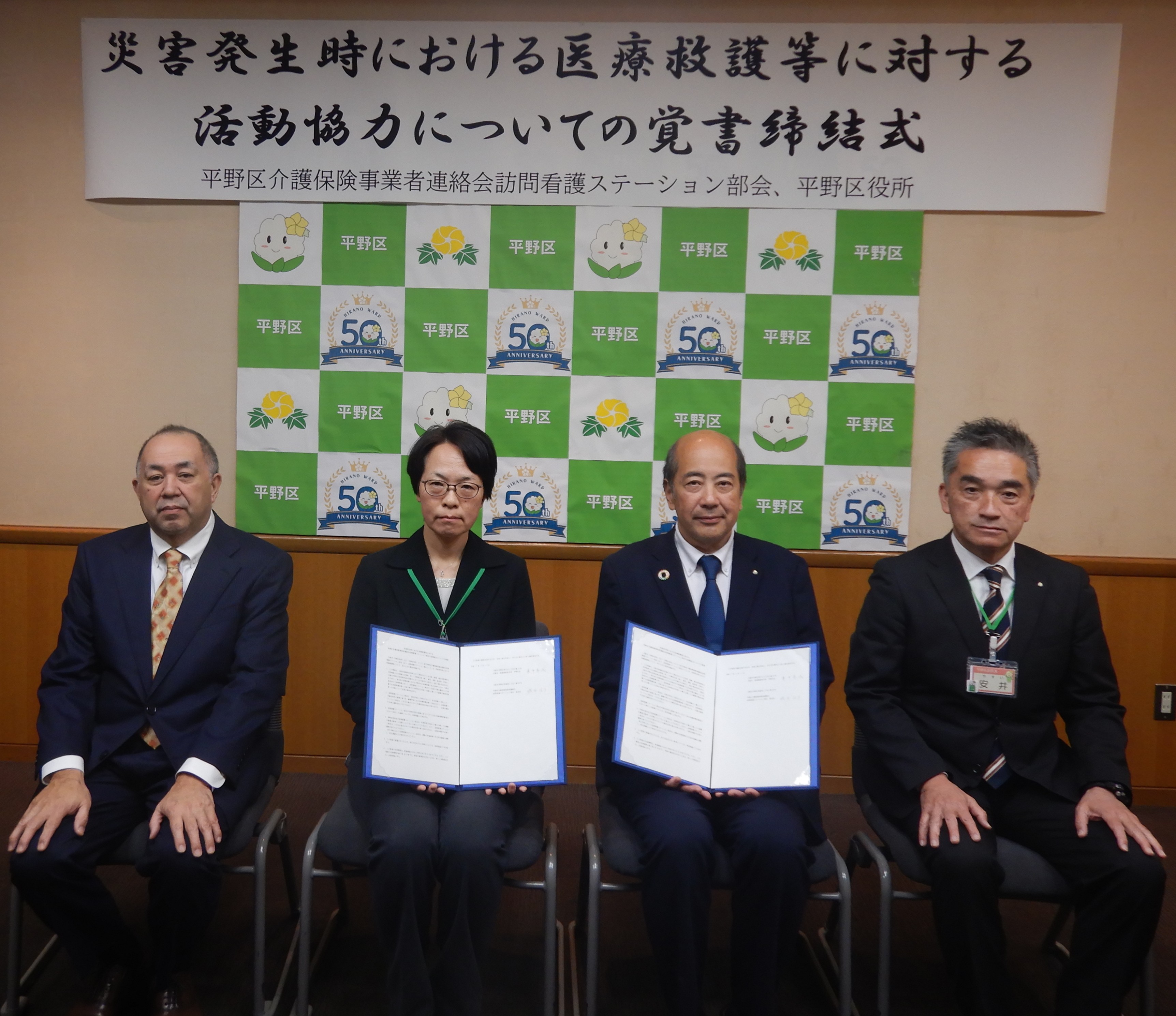 大阪市平野区役所は、平野区介護保険事業者連絡会訪問看護ステーション部会と災害発生時における医療救護等に対する活動協力についての覚書を締結しました