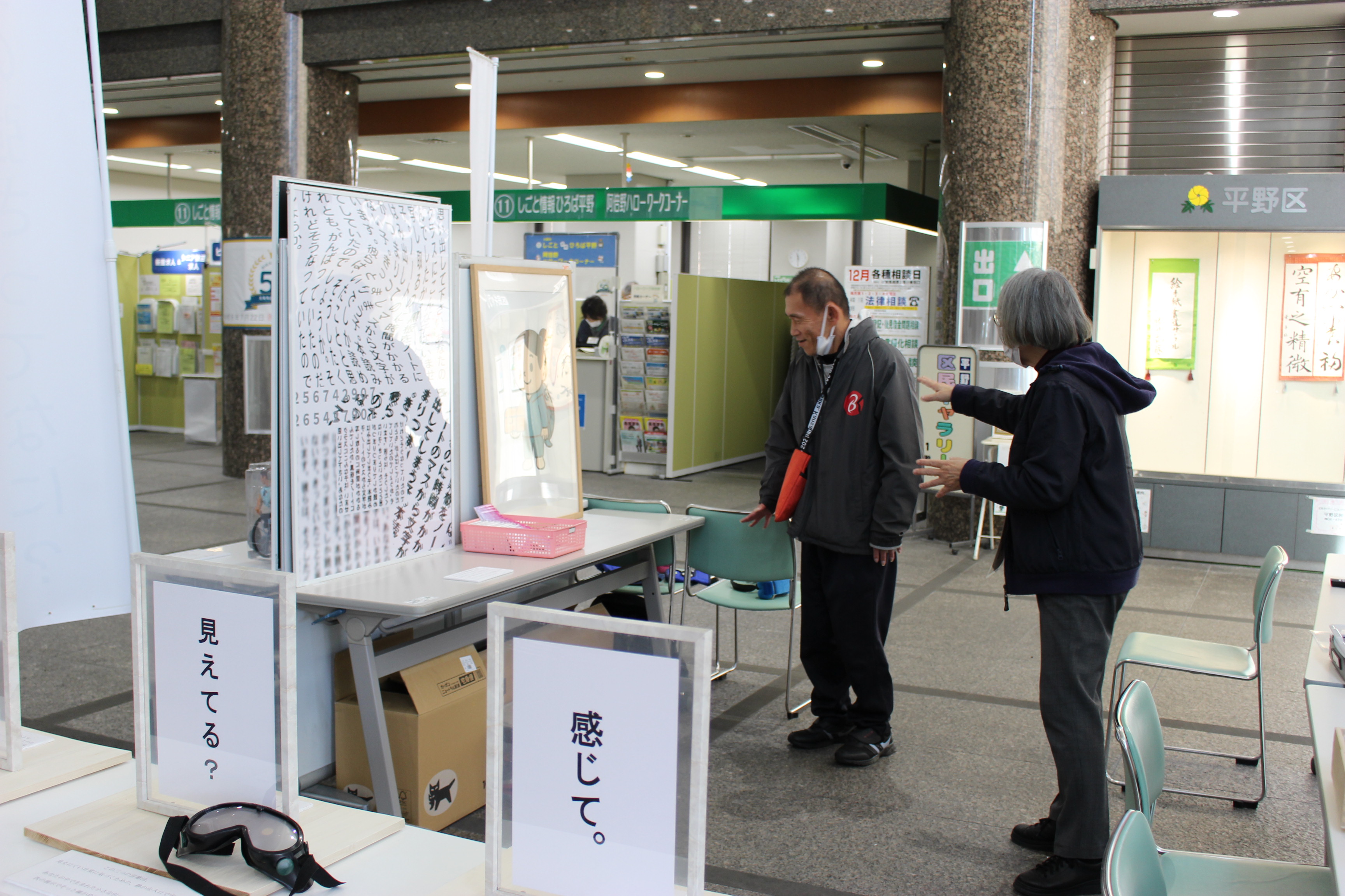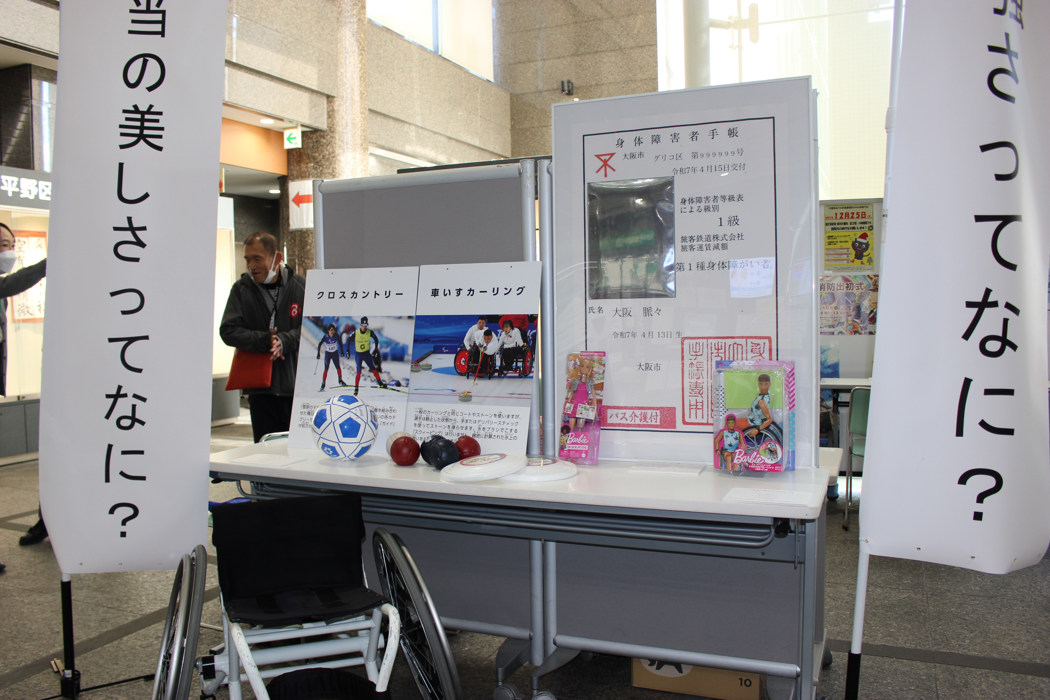 「障がい者週間」は、障がいの有無にかかわらず共生する社会の実現をめざしたもので、当区では、平野区地域自立支援協議会の当事者部会の皆さま方、障がい者基幹相談支援センターなどと連携協力し、様々な啓発展示やバスケットボール用車いすの体験をはじめ障がい者スポーツのPRなどを通じ、ご来場の皆さま方と交流させていただきました。