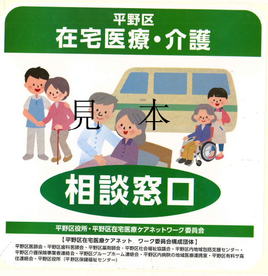平野区では、在宅医療の相談ができる窓口にステッカーを掲示しています。