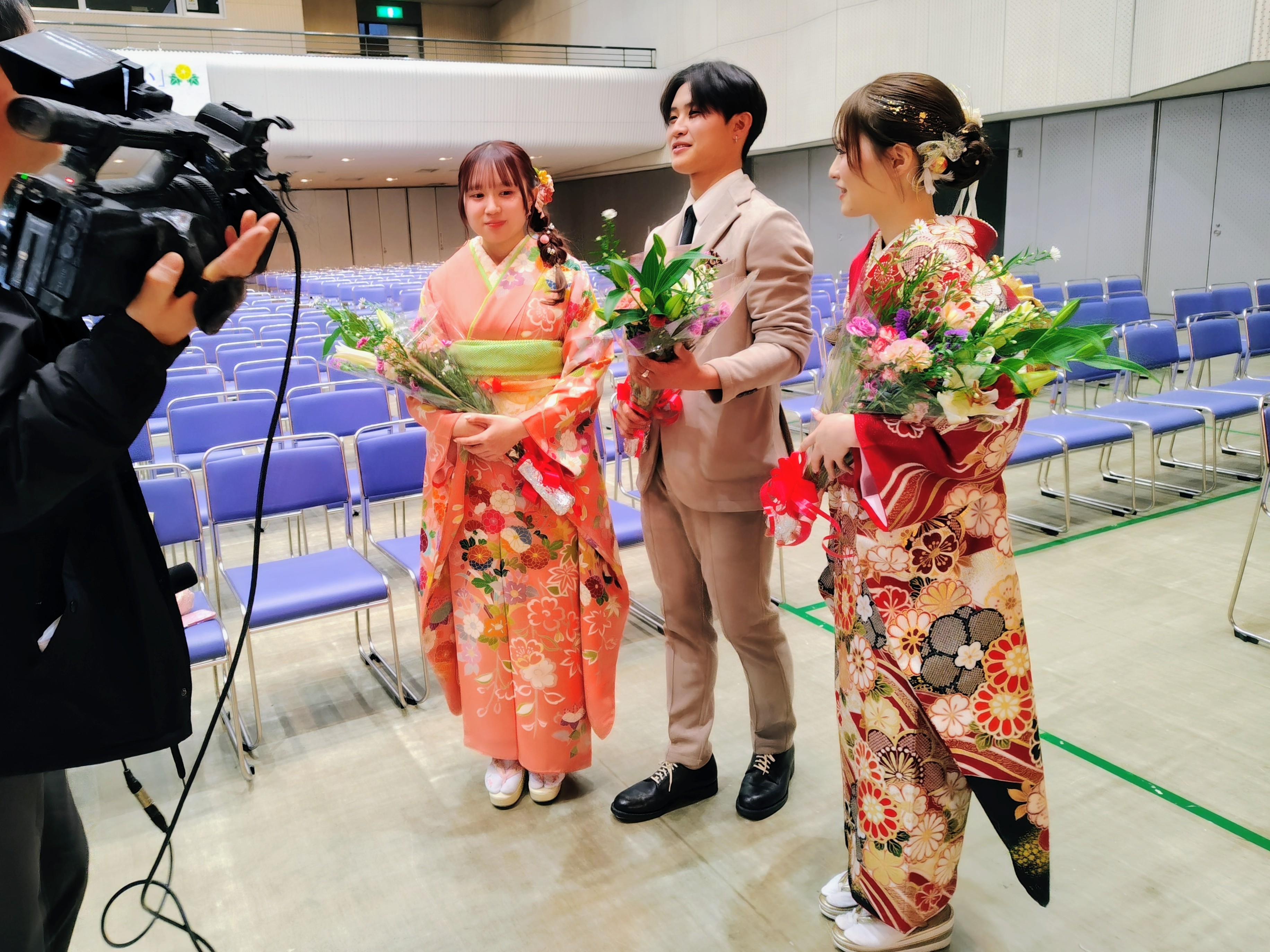 式典終了後は、久しぶりに再会した同級生と語り合う姿が見られ、写真撮影を楽しむなど、和やかな雰囲気に包まれていました。