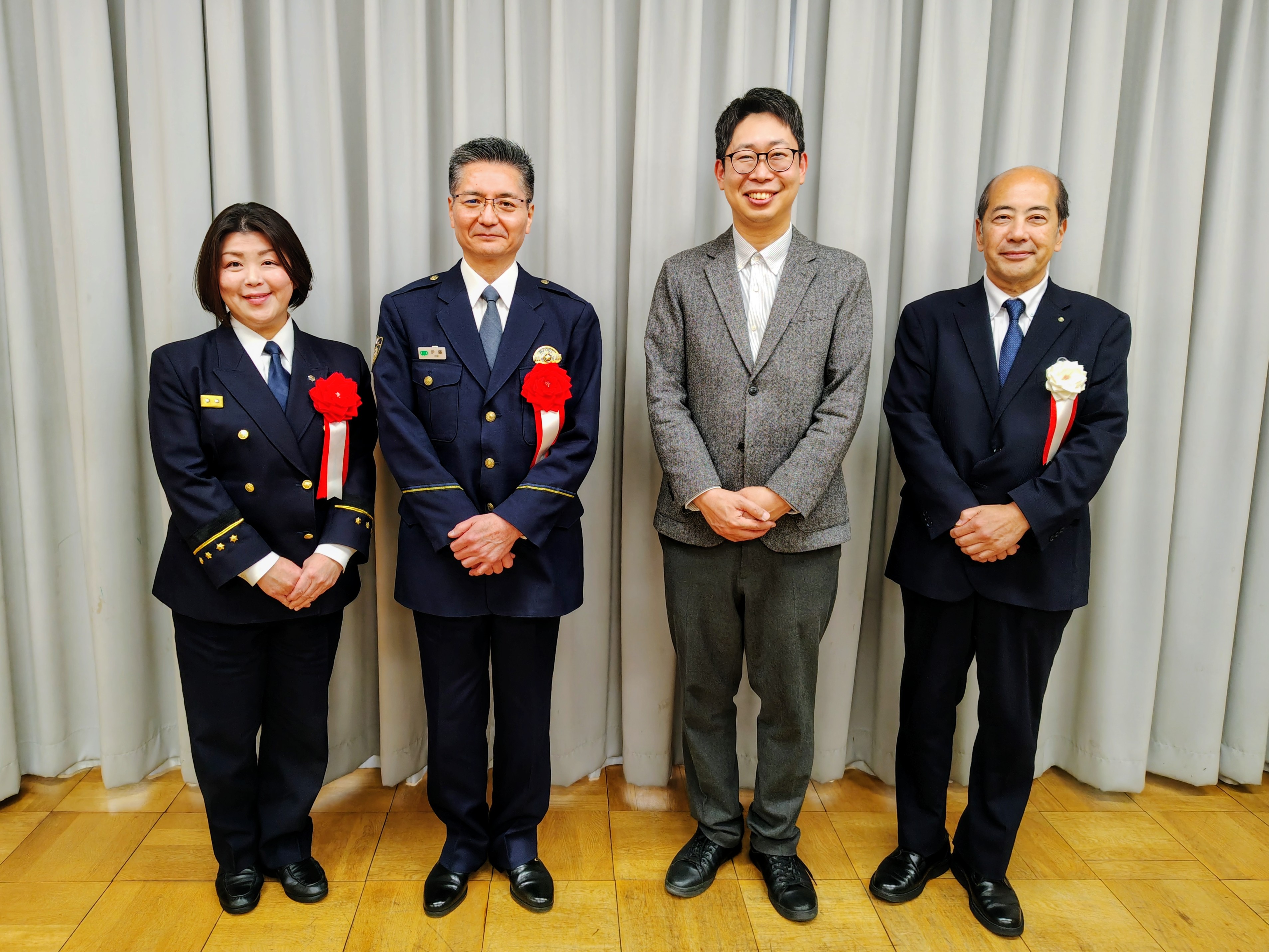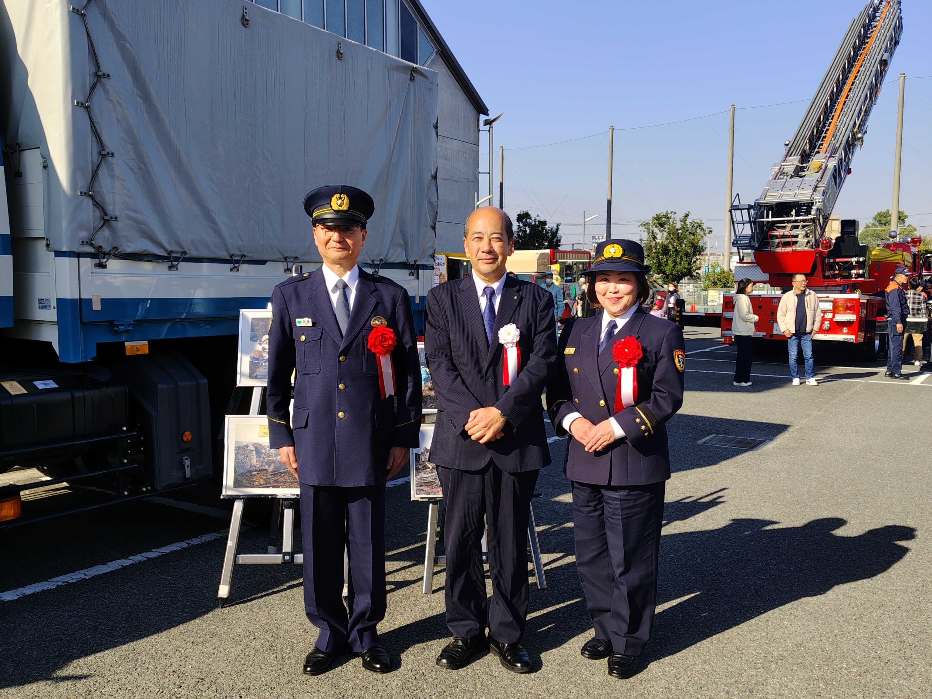 伊藤警察署長・金井消防署長とはしご車前で記念撮影を行いました!