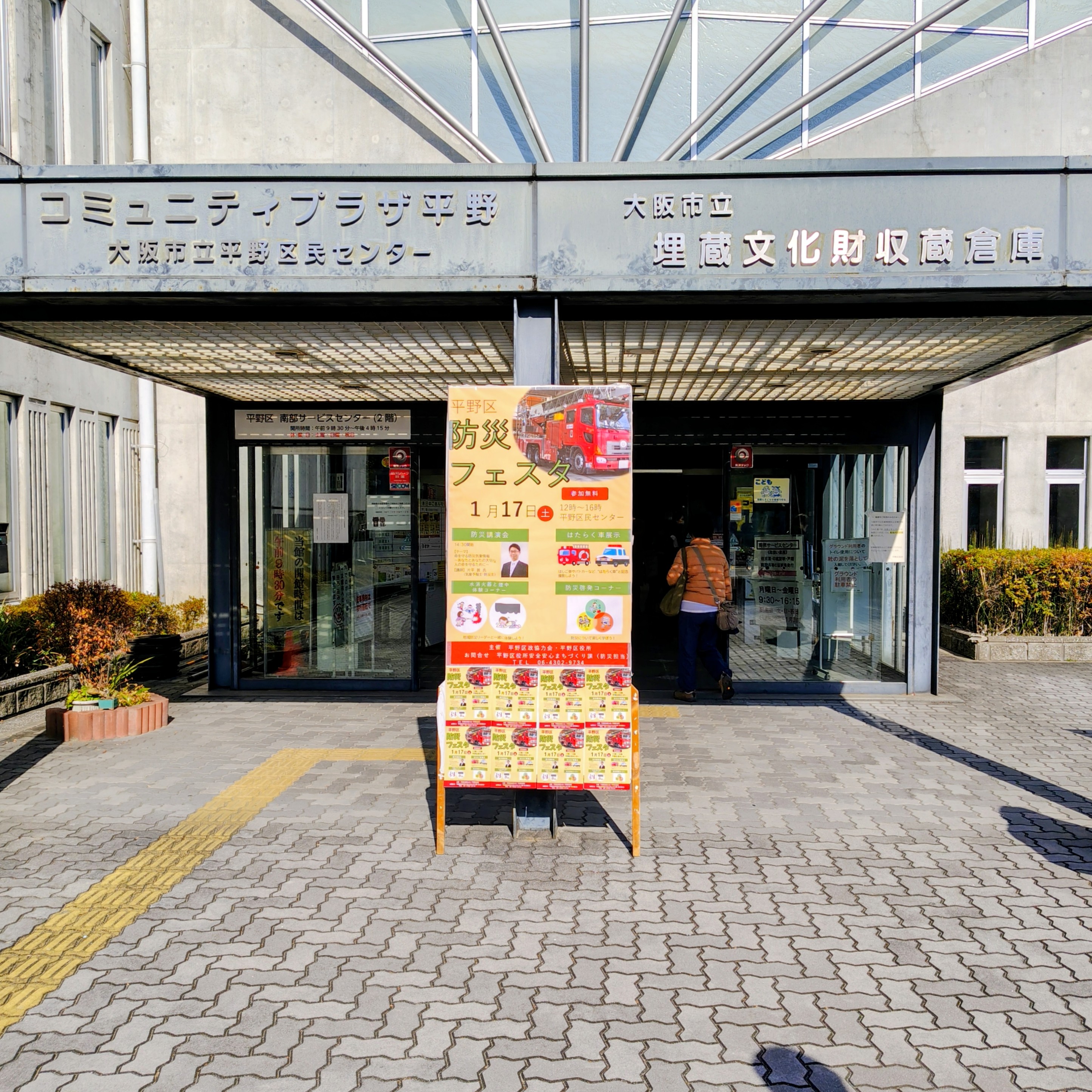 1月17日(土曜日)、平野区民センターで平野区役所・平野区政協力会主催の平野区防災フェスタが開催されました。