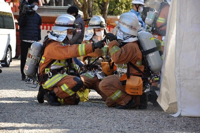 本訓練は、1月26日の「文化財防火デー」に伴い実施するもので、文化財に対する市民の防火意識の向上、自衛消防体制の強化、消防部隊の技術向上を図ることを目的としています。