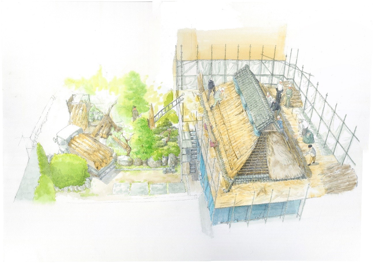 本展では、大阪の代表的な建築やまちの景観を数多く描いてきたイラストレーターの綱本武雄氏が、親族から相続した築およそ140年の空家を修復、再生し、自宅として暮らし始める過程を同氏のイラスト作品により絵本仕立てで紹介します。作品に加えて、修復の各工程の写真や、修復を決意してから重ねてきた家族会議、資金調達、職人や工務店の検討、工事内容など、家を再生していく過程を詳細に記録したノート、軸組模型、工事に使用された道具類も展示します。