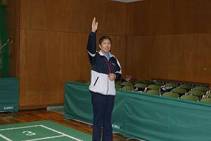 試合後、集合し、審判が試合の得点と勝敗を公表します。