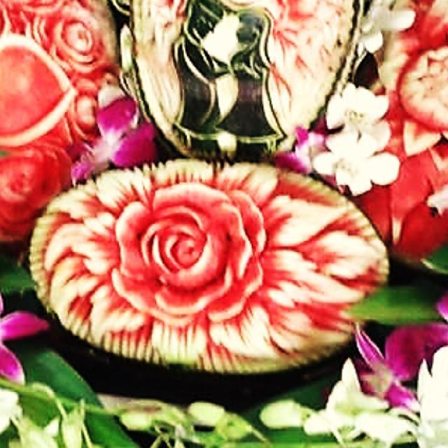 Carve various figure of flowers with a knife on fruits / vegetables'skin.You can enjoy the world art easily. - Exhibition of world picture books