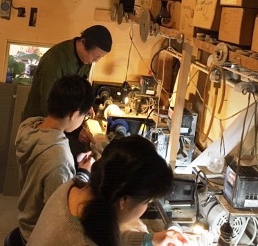 酸素バーナーを使い、宇宙のペンダントの制作体験を実施。