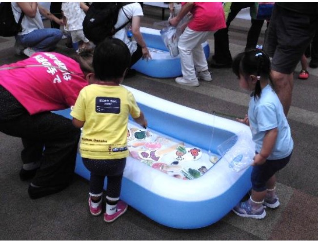 折り紙コーナー、バルーンアート、食材カード釣りゲーム等・・・ちょっとしたあそびのコーナーがあります。絵本の読み聞かせや健康チェックコーナーも好評です!親子でほっこりタイムを楽しみませんか?