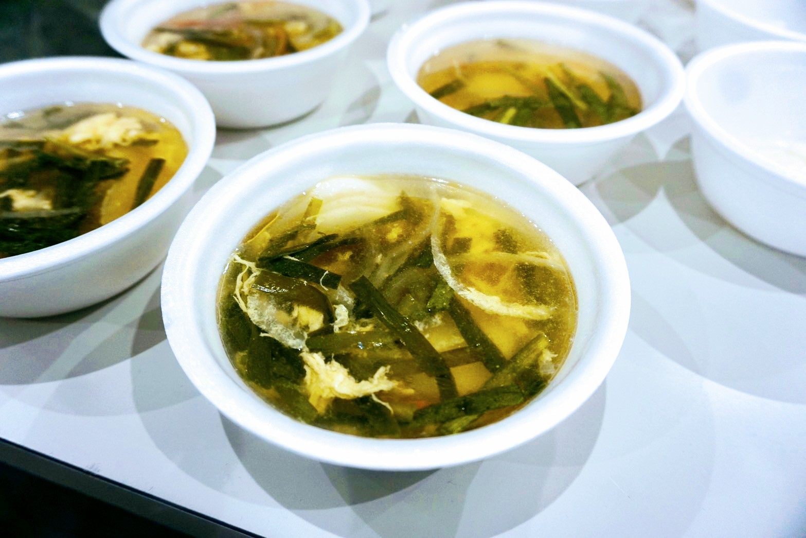 キンパ、キムチ、オムク、トックスープの4品を用意し、みなさまに韓国文化を味わってお帰りいただきました。(株式会社徳山物産監修)
