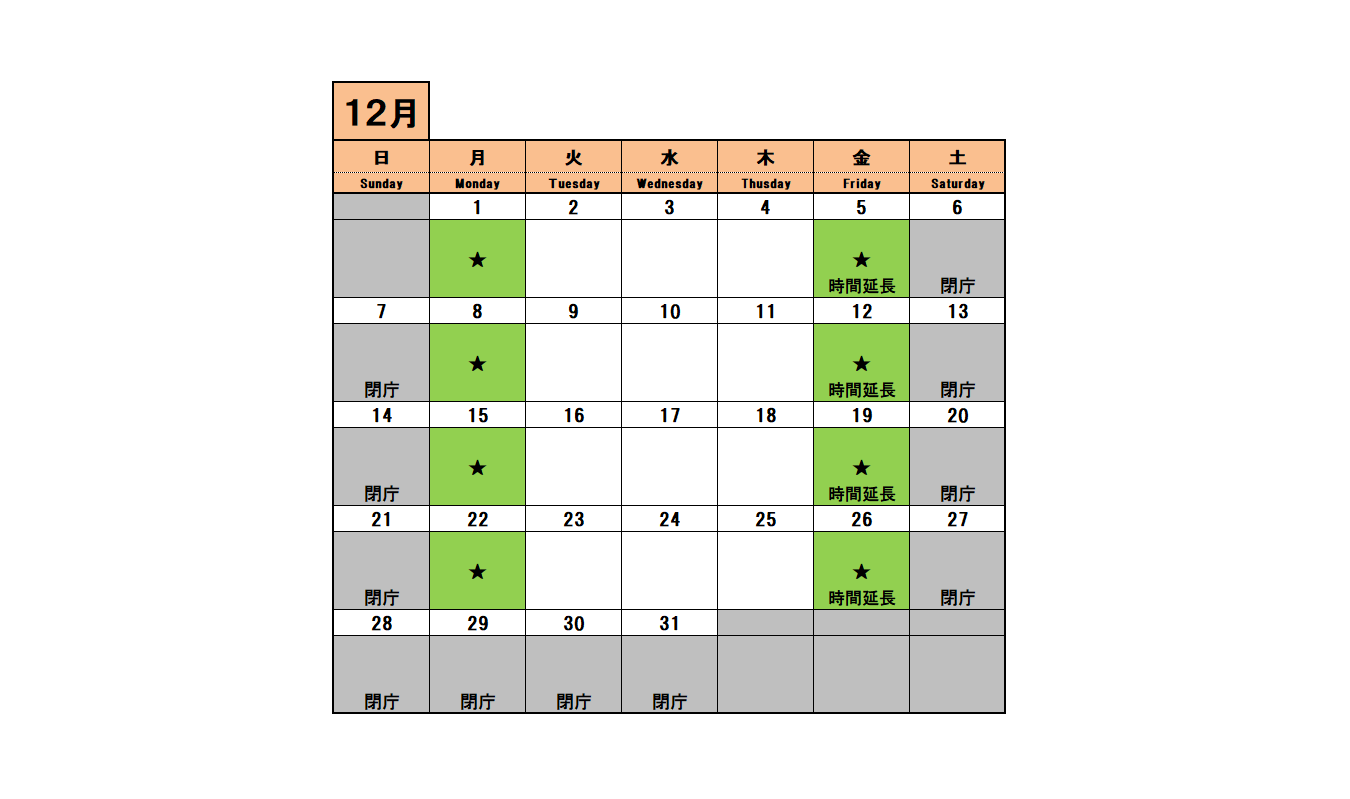 毎月第4日曜日開庁の窓口時間は 9時から17時30分
