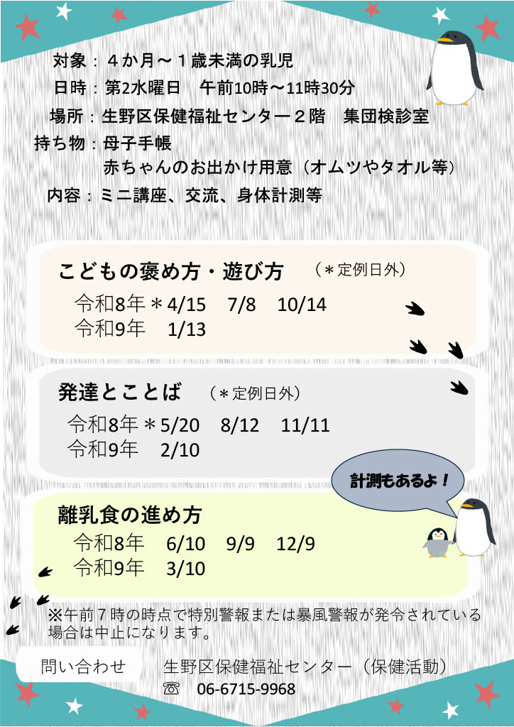 同じ月齢の親子と出会って、ほっとリフレッシュできる時間をぜひ一緒に過ごしましょう!🐧🐧