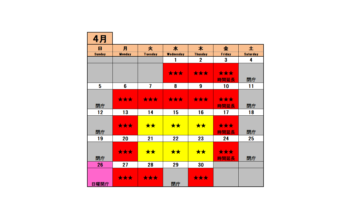 窓口混雑予想カレンダー
