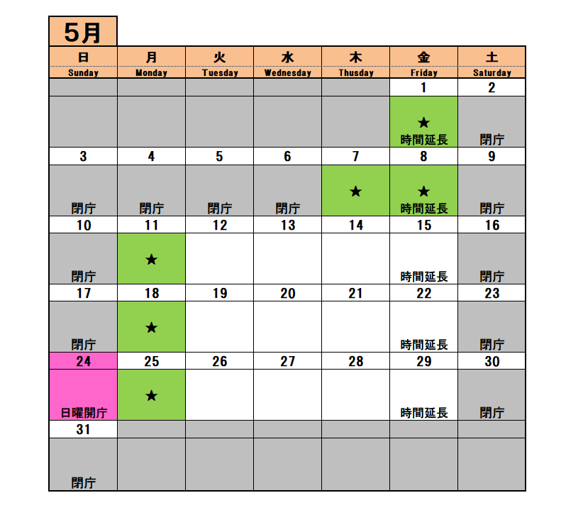 毎月第4日曜日開庁の窓口時間は 9時から17時30分