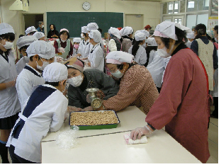 小学校での味噌づくり