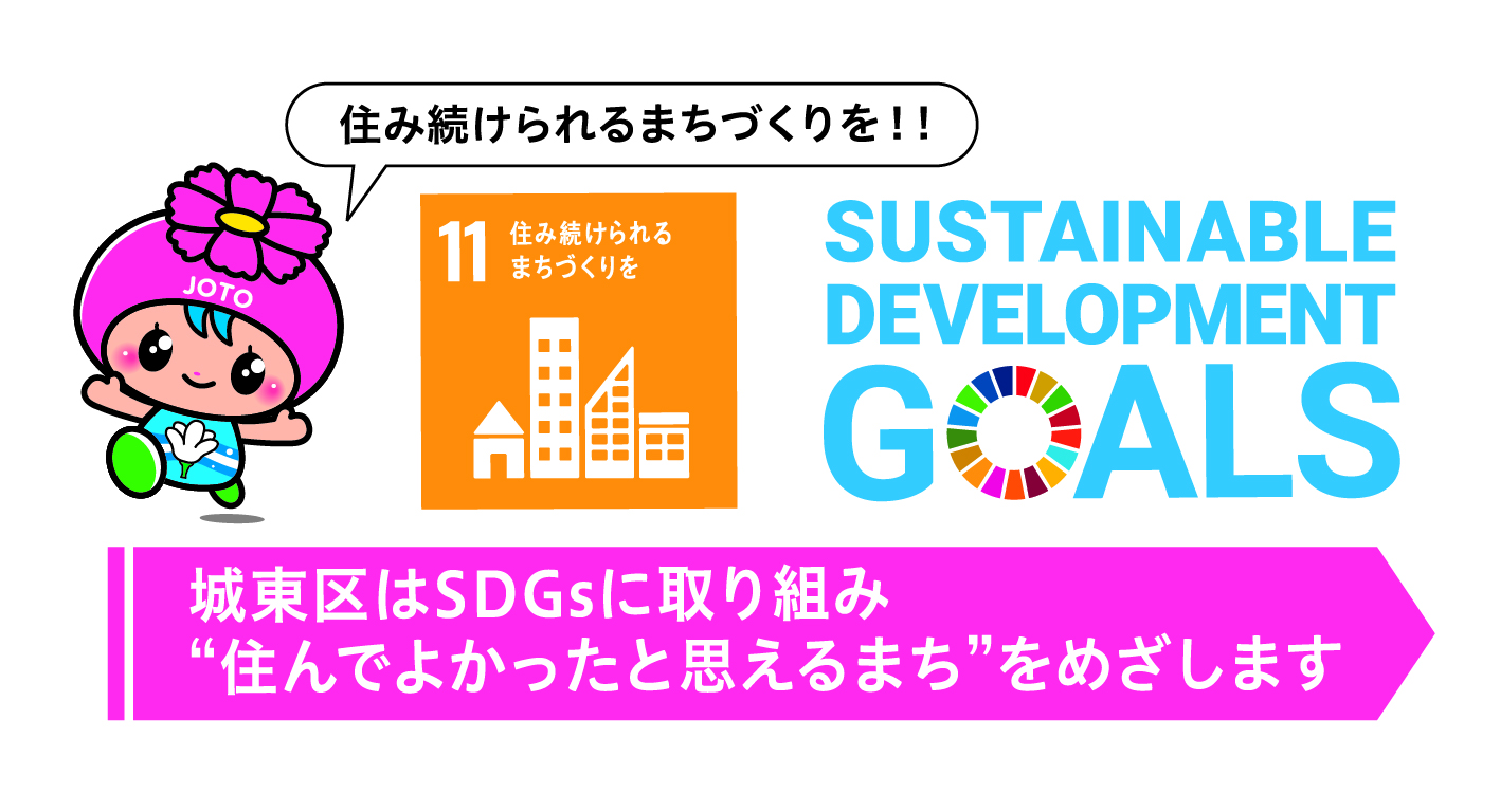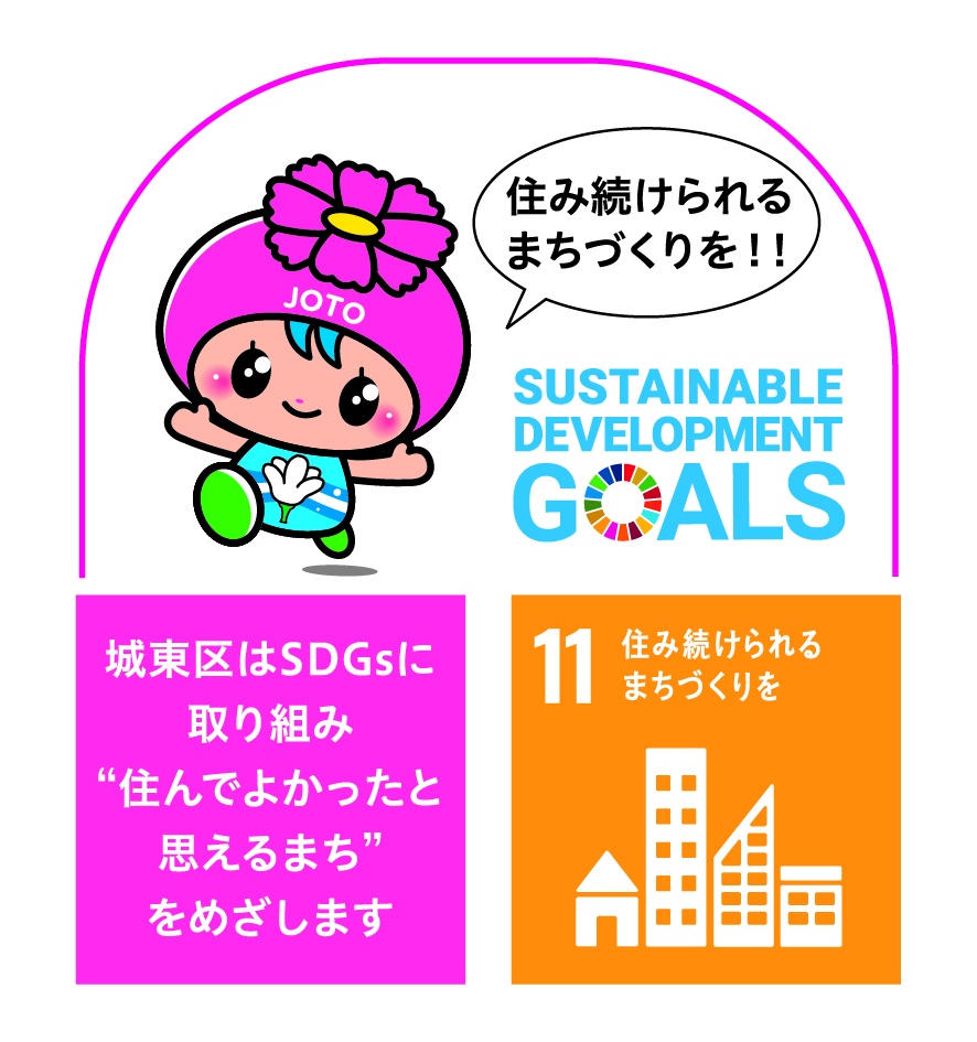 城東区役所は持続可能な開発目標(SDGs)を支援し、「城東区SDGs行動指針」に基づき取り組んでいます。
