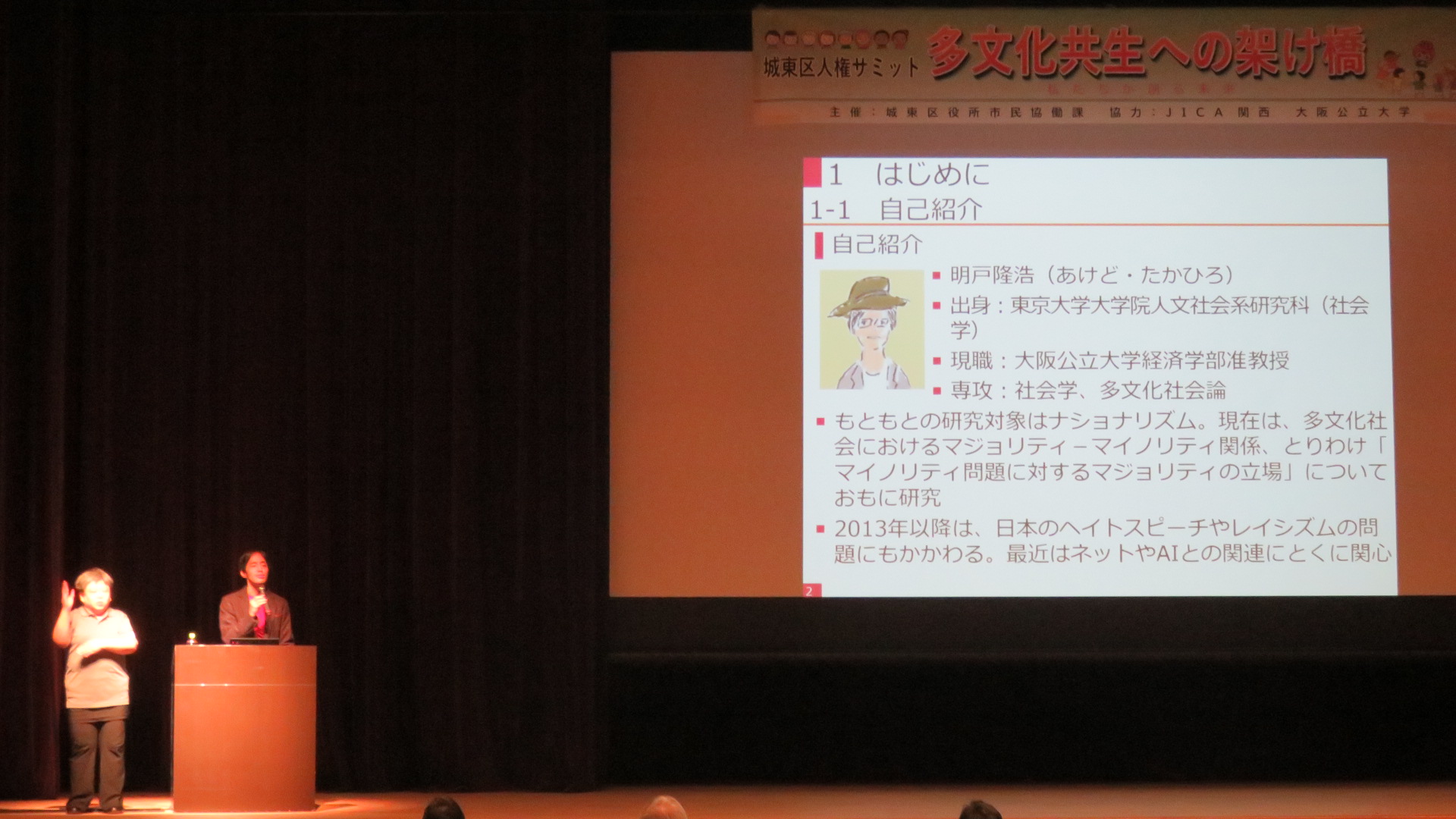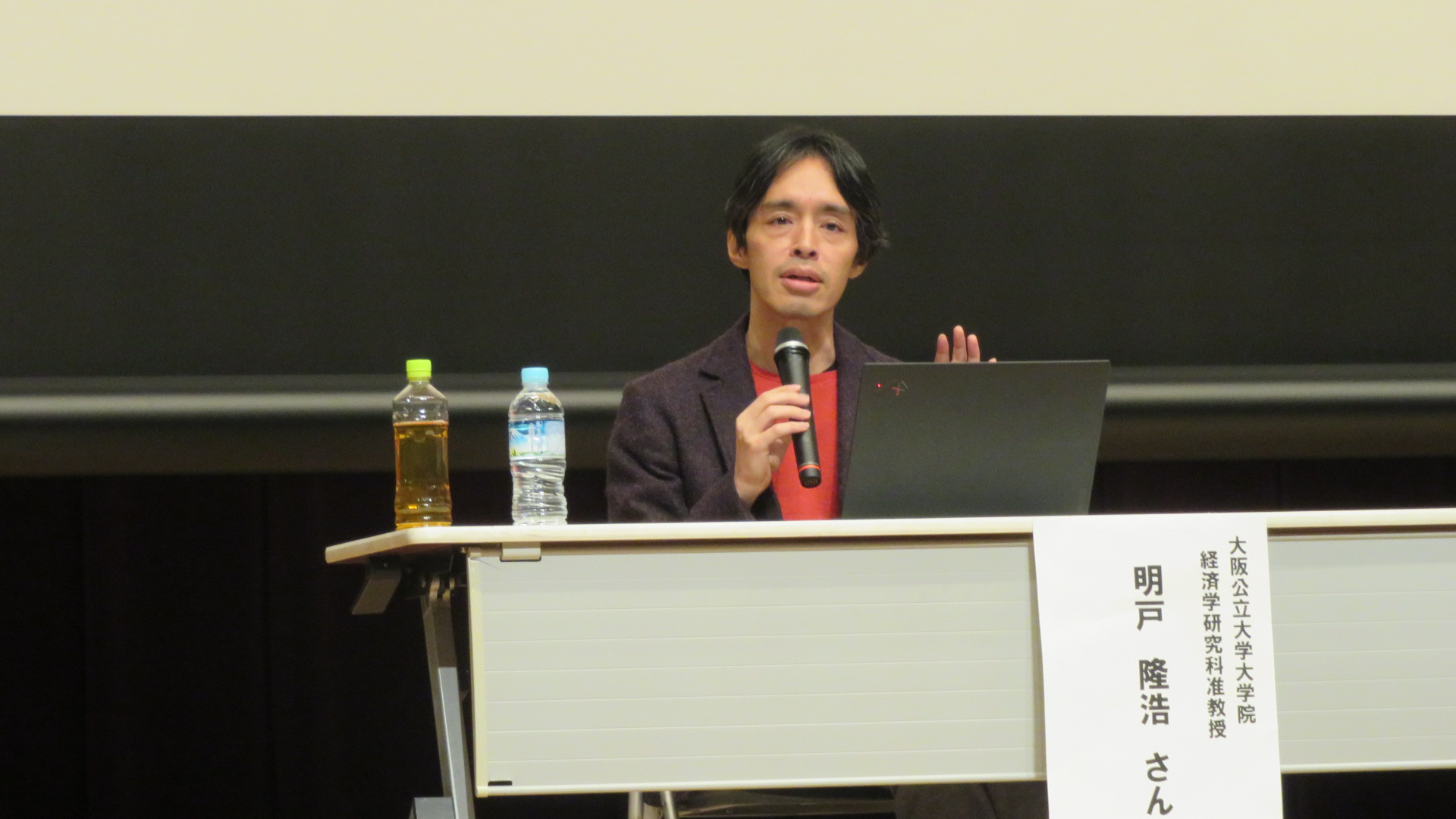 サミットの第1部は大阪公立大学の明戸 隆浩(あけど たかひろ)准教授に基調講演を行っていただきました。
