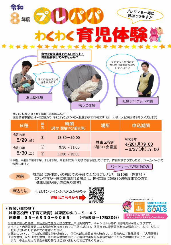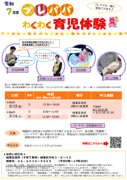 城東区にお住まいの初めての子育てとなるプレパパ 各10組(先着順 )
