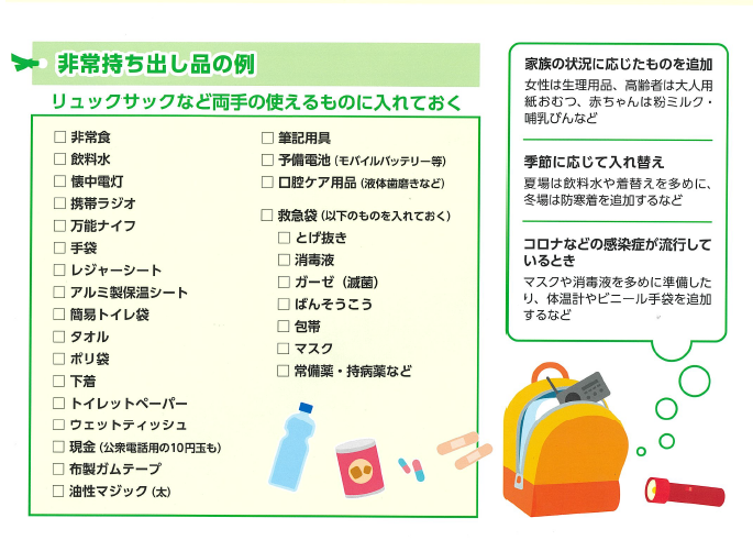 冬場にあわせて非常持ち出し品の点検をしましょう
