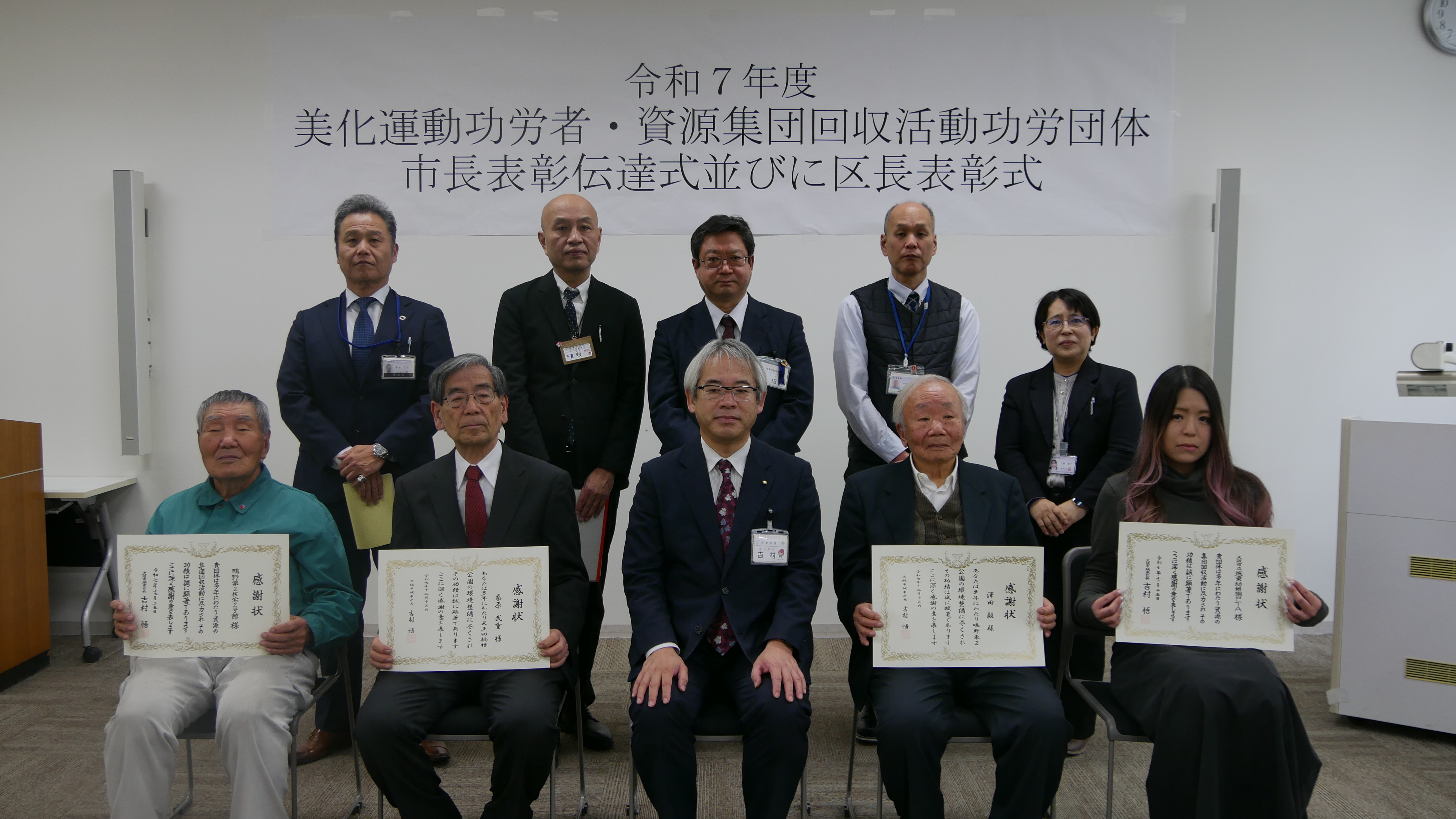 令和7年度 美化運動功労者・資源集団回収活動功労団体市長表彰伝達式並びに区長表彰式を開催しました