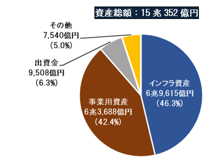 建物及び工作物の減価償却による事業用資産及びインフラ資産の減などにより、前年度比329億円減の14兆7,390億円となりました。