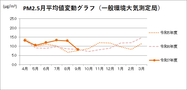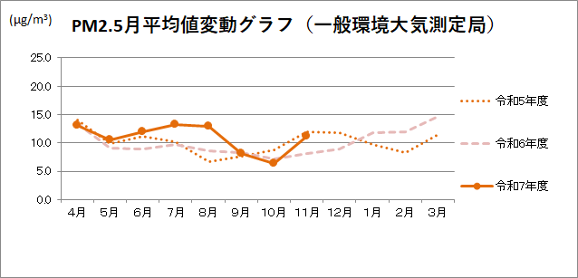 A8.例年、冬季から春季にかけてはPM2.5濃度の変動が大きく、上昇する傾向がみられ、夏季から秋季にかけては比較的安定した濃度が観測されています。