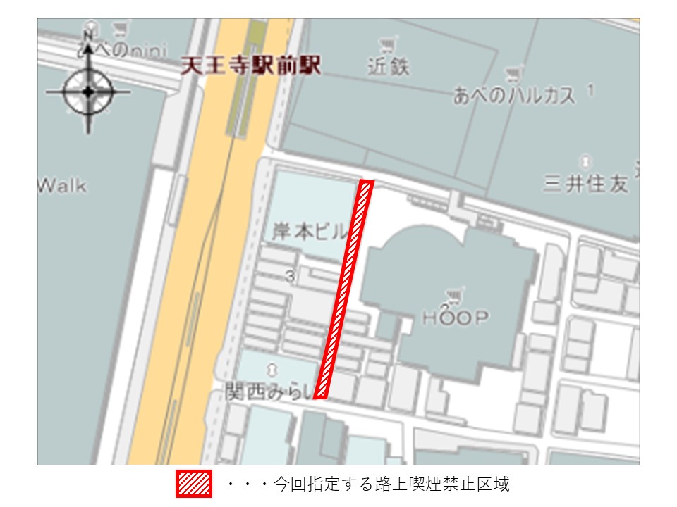 大阪市とあべの巴通り商店会は、大阪市路上喫煙の防止に関する条例(平成19年大阪市条例第54号)第6条第1項に定める道路等を管理する権原を有する者と合意書を締結し、ハルカスロード巴通りは路上喫煙禁止区域となりました。