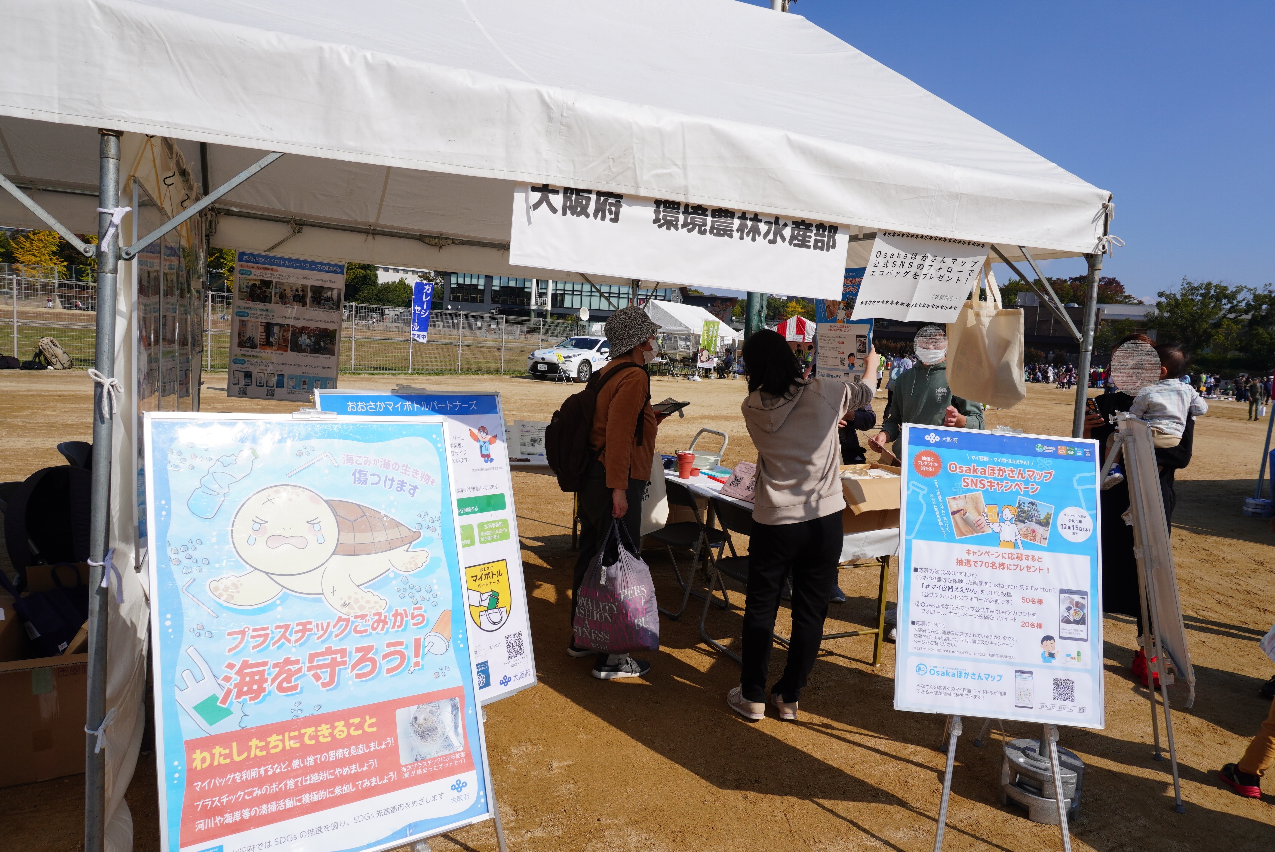近年、大阪市内を流れる川の水がきれいになり、魚の種類も多くなってきましたが、新たに海洋プラスチックが、生態系に様々な影響をもたらしています。環境局水環境保全グループ・企画課のブースに立ち寄って海洋プラスチックが身近な問題であることに気づいてください。