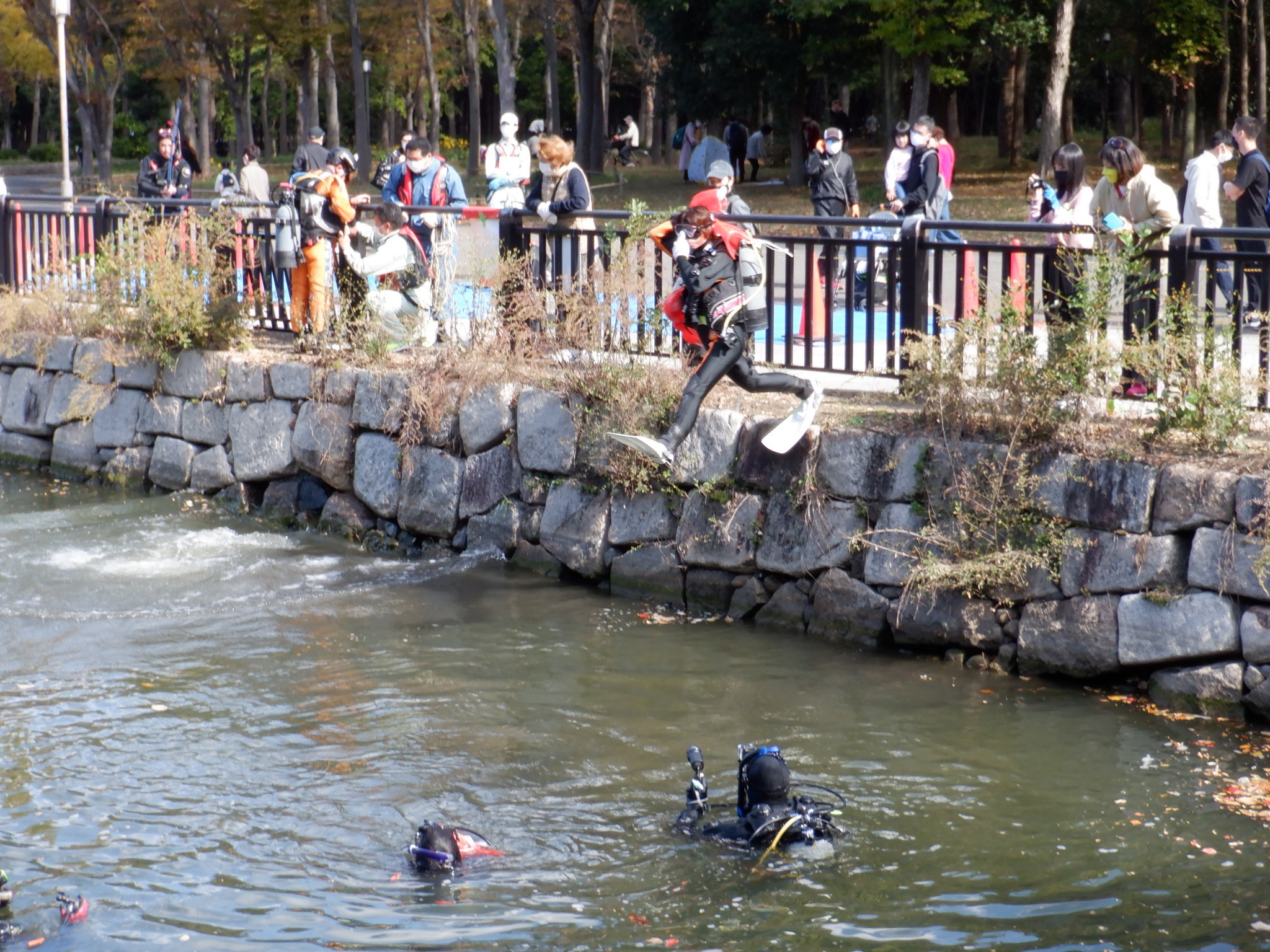 大阪府、大阪市は11月7日(日曜日)に特定非営利活動法人海未来とともに大阪城公園東外堀の水中清掃活動を実施しました。