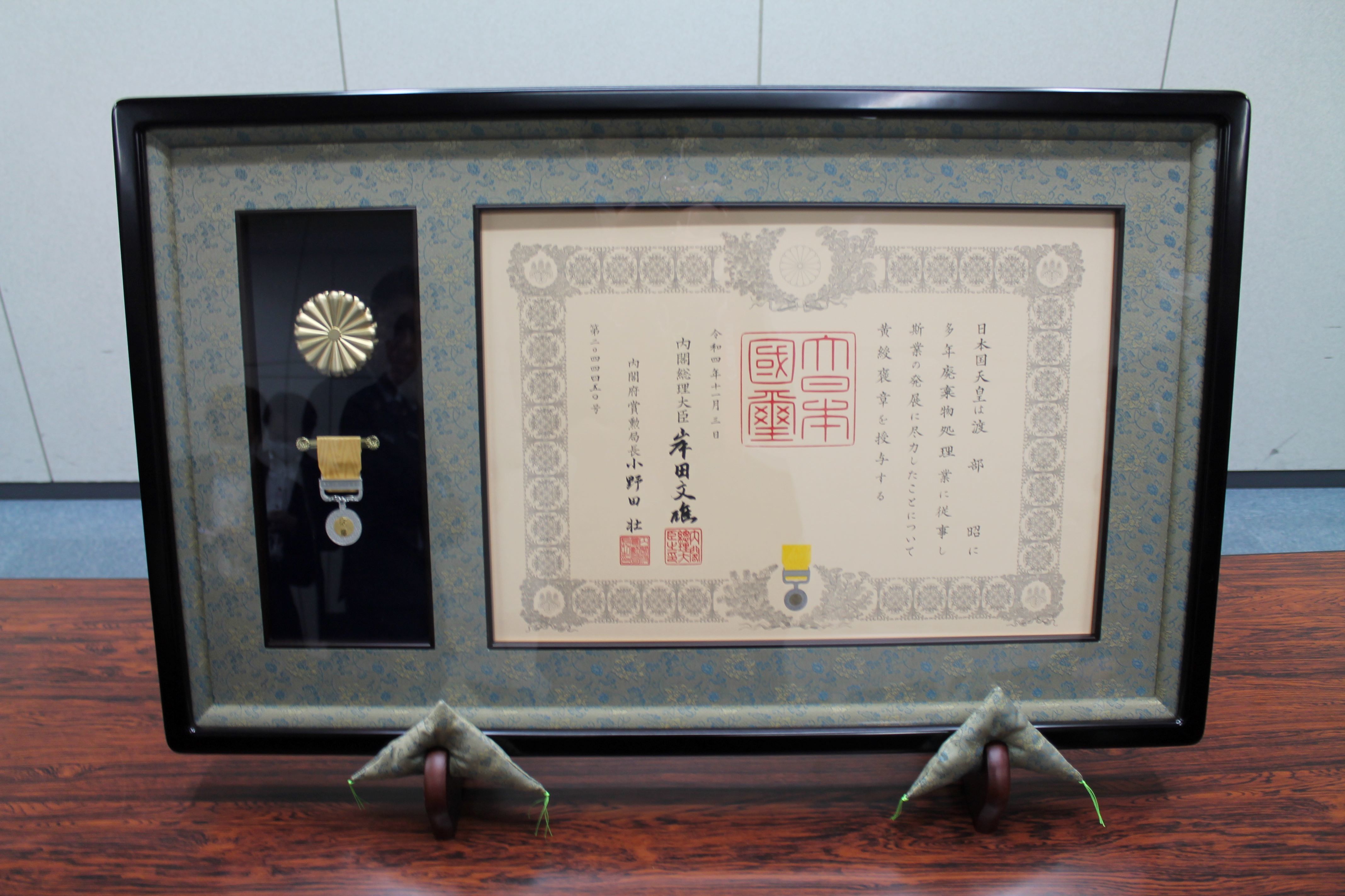 令和4年 秋の褒章「黄綬褒章」を受賞されました