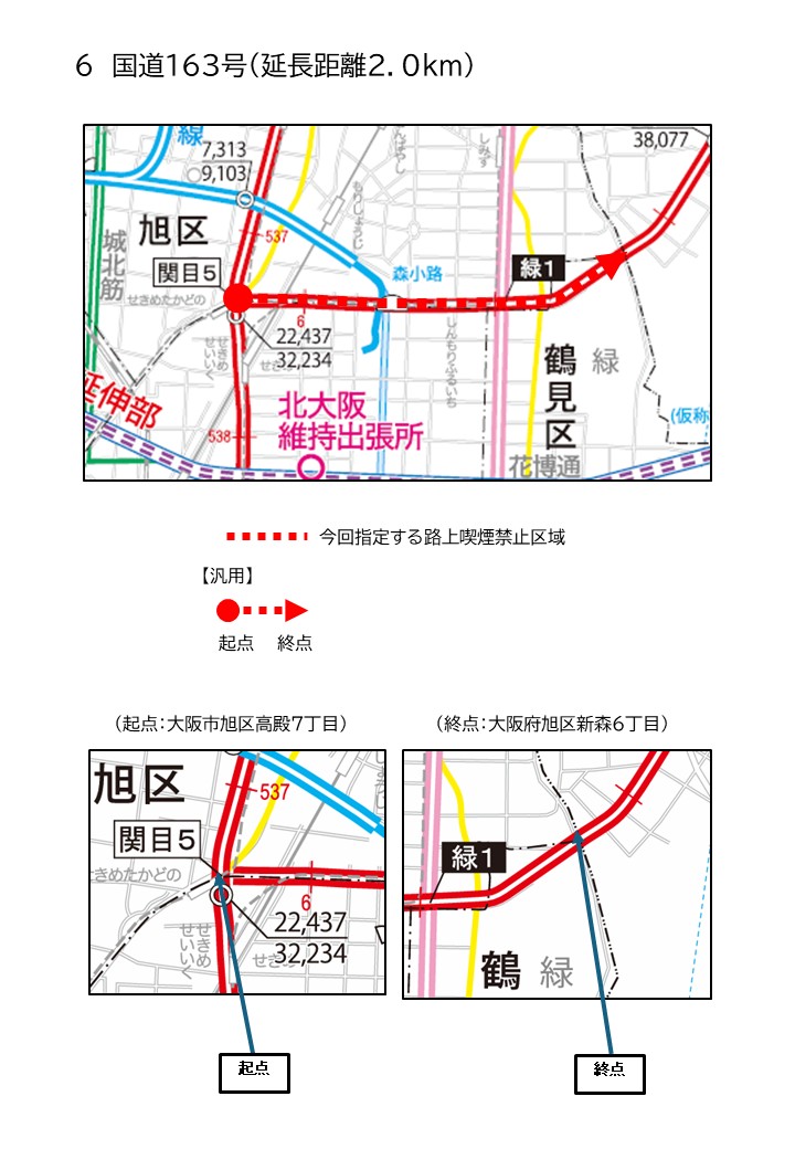| 国道163号 | 大阪市旭区高殿7丁目 | 大阪府旭区新森6丁目 | 2.0km |