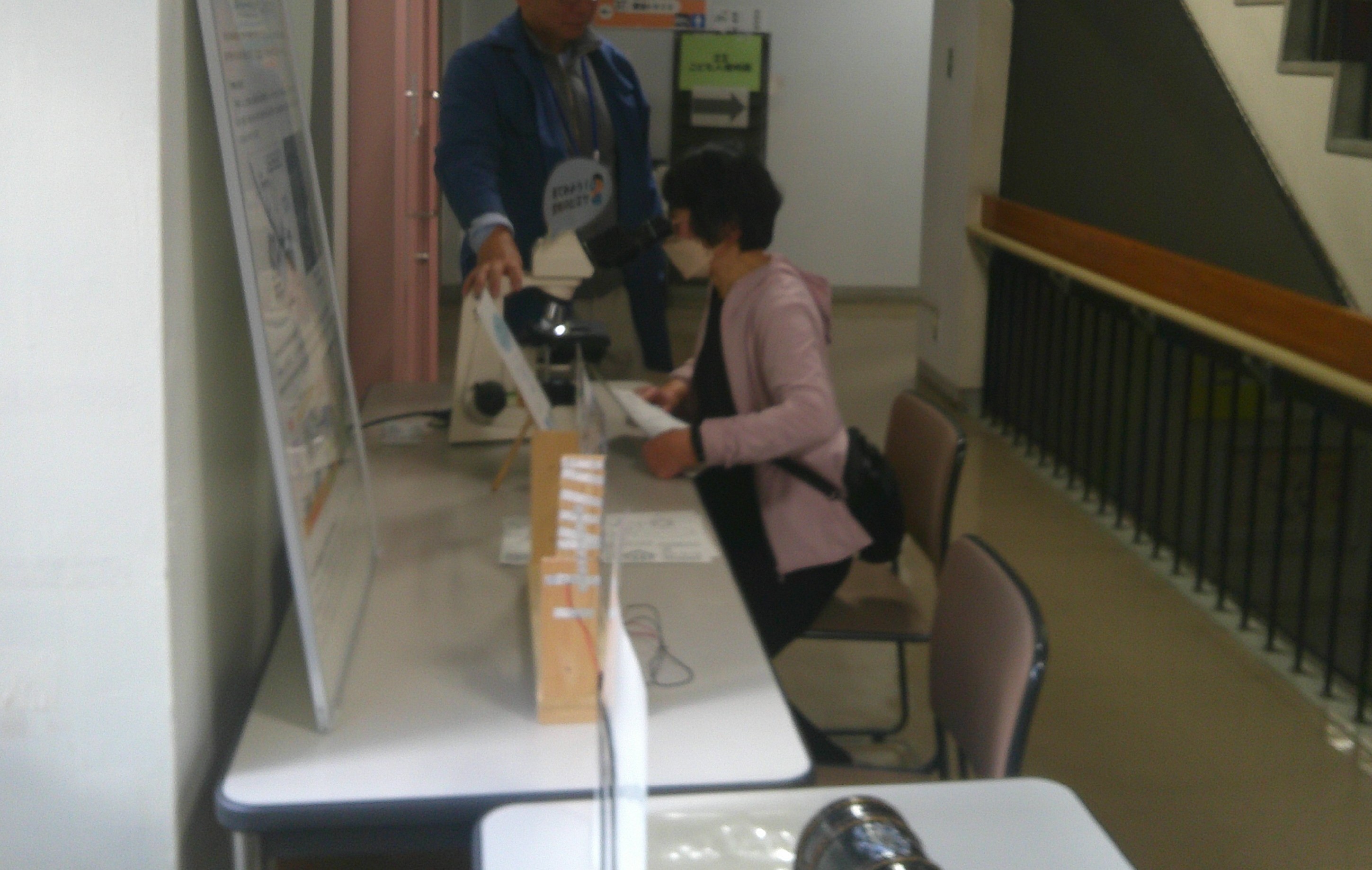 このイベントは、此花区役所が主催し、区民の方に地域の防災防犯や健康・食育・環境など、体験を通して楽しく学んでいただく目的に開催されました。環境局環境管理課では微小粒子状物質(PM2.5)等に関するパネル展示ほか、顕微鏡によるPM2.5の観察、大気環境クイズ、災害時の対応に係るアスベストサンプラーの展示を実施し、参加者に対して大気環境の保全に関する啓発を行いました。