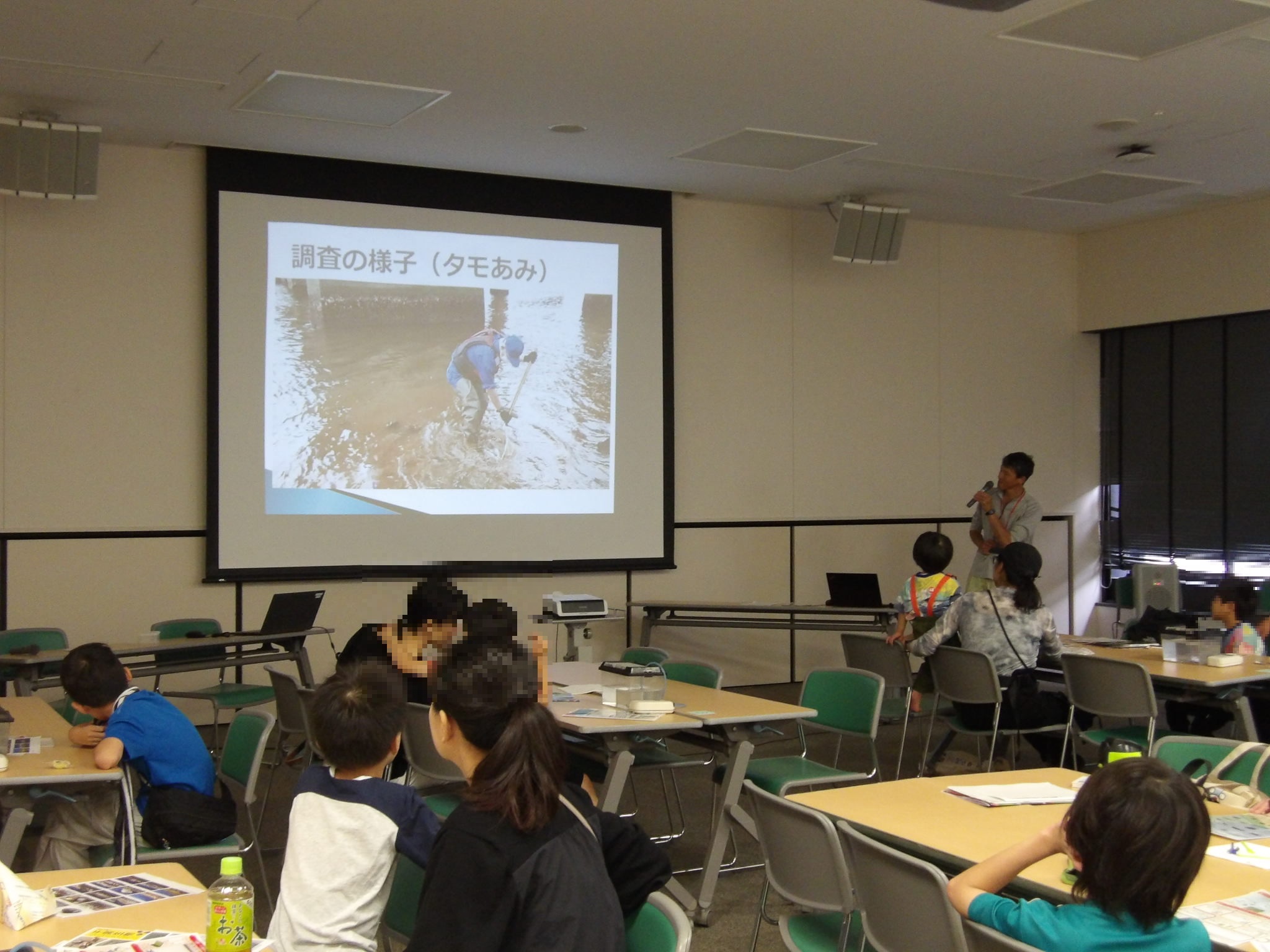 淀川や十三干潟にすんでいる生き物の説明をおこないました。