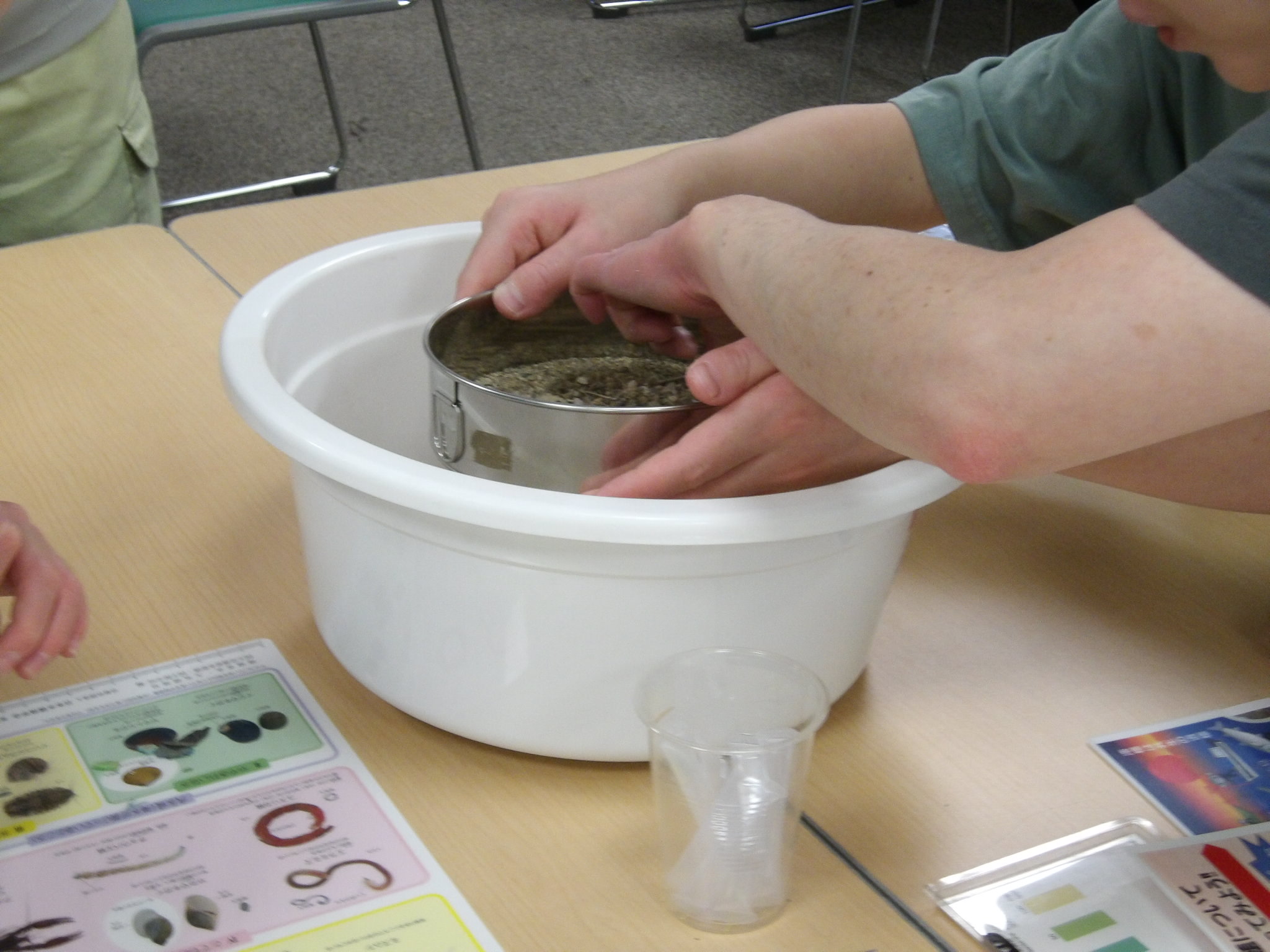 - 河川敷の砂を使ったマイクロプラスチックの分離実験