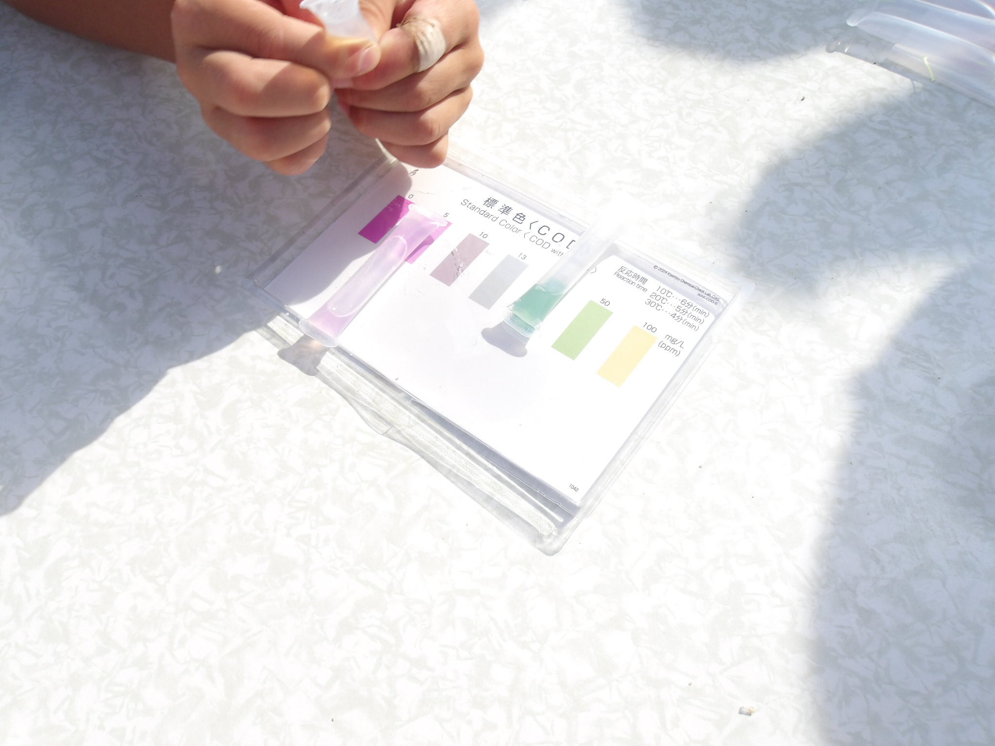 釣りをしていた川の水質実験を行っていただきました。