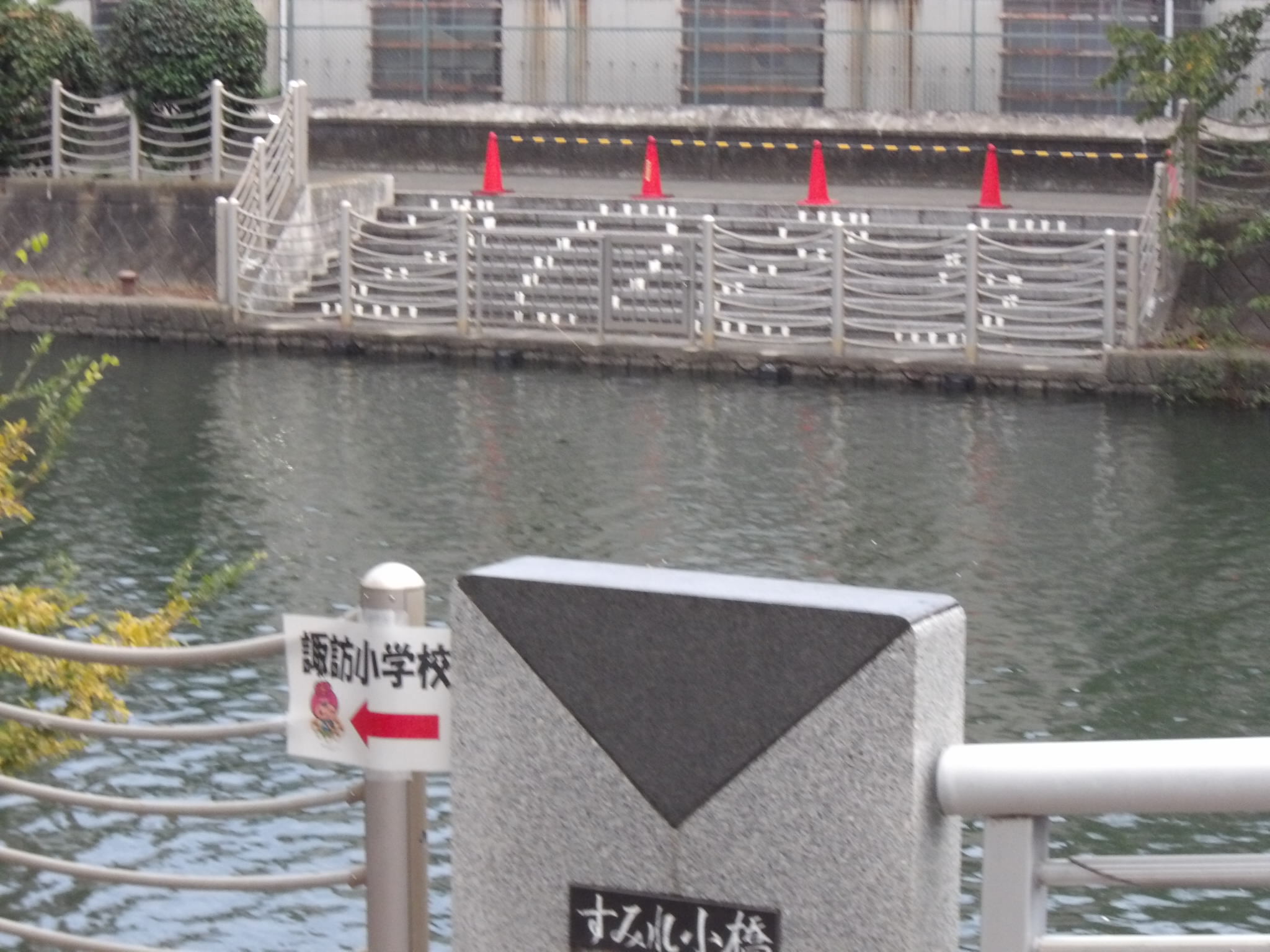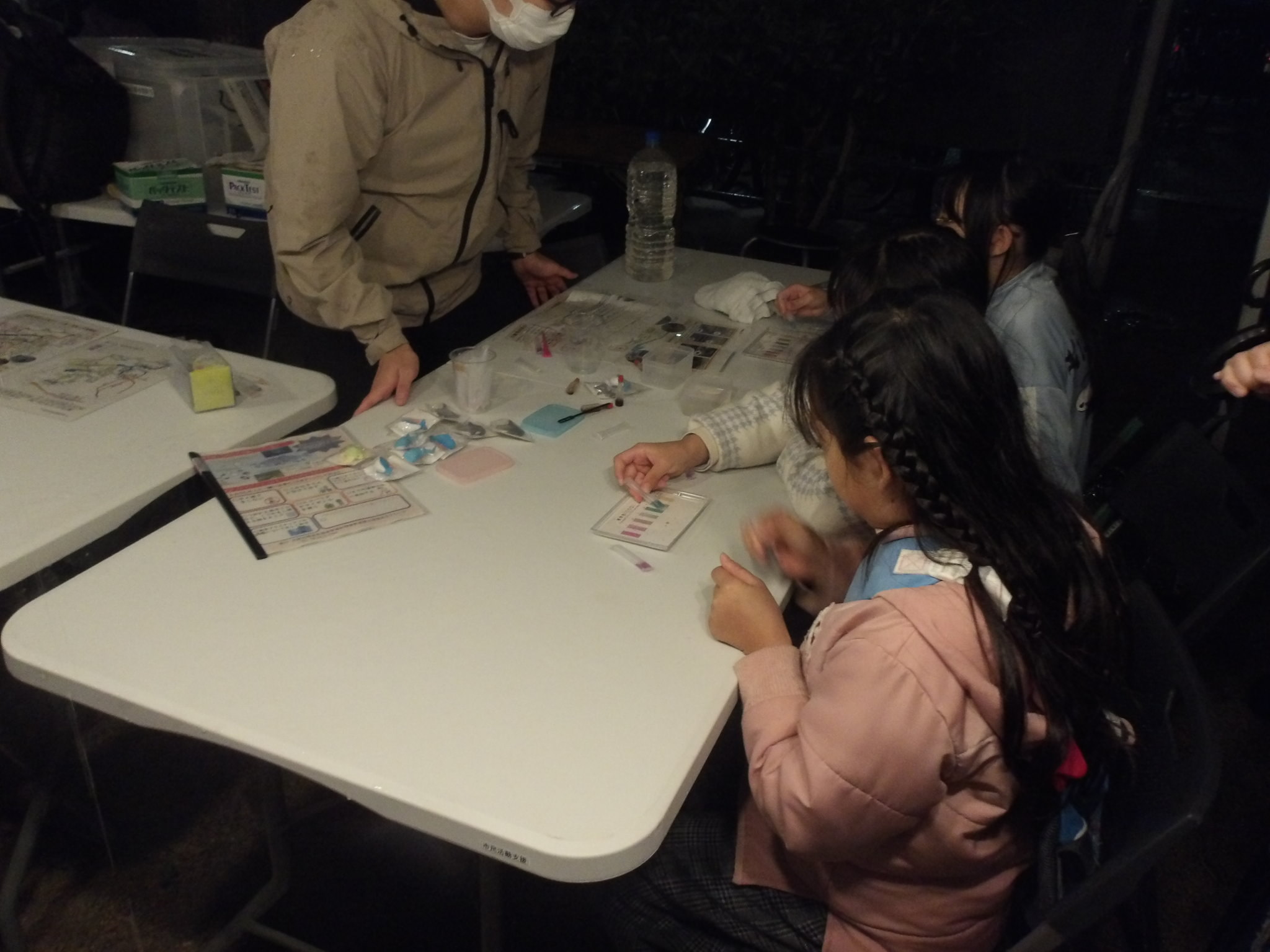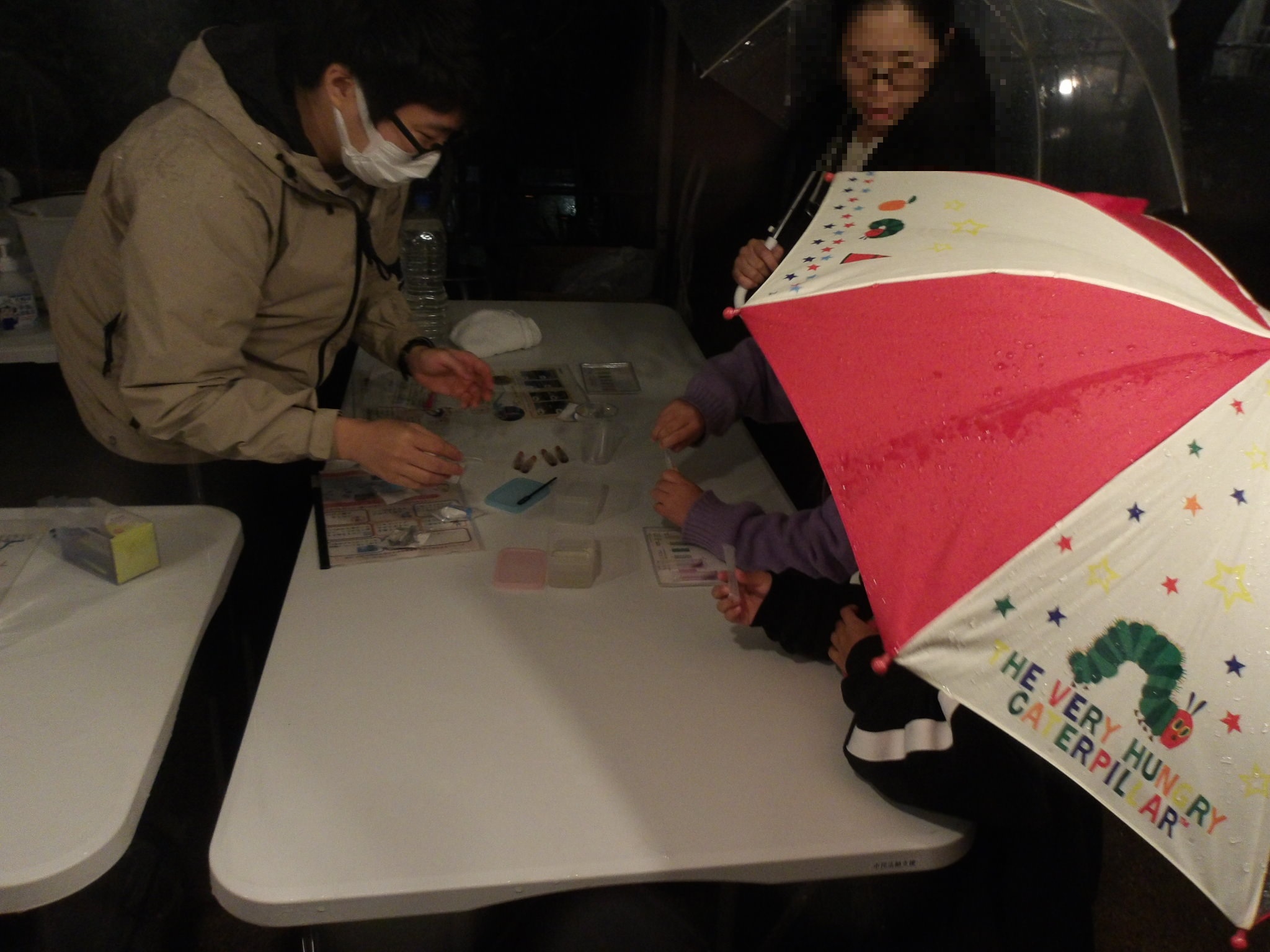 雨の中、⽔質実験を⾏っていただきました。