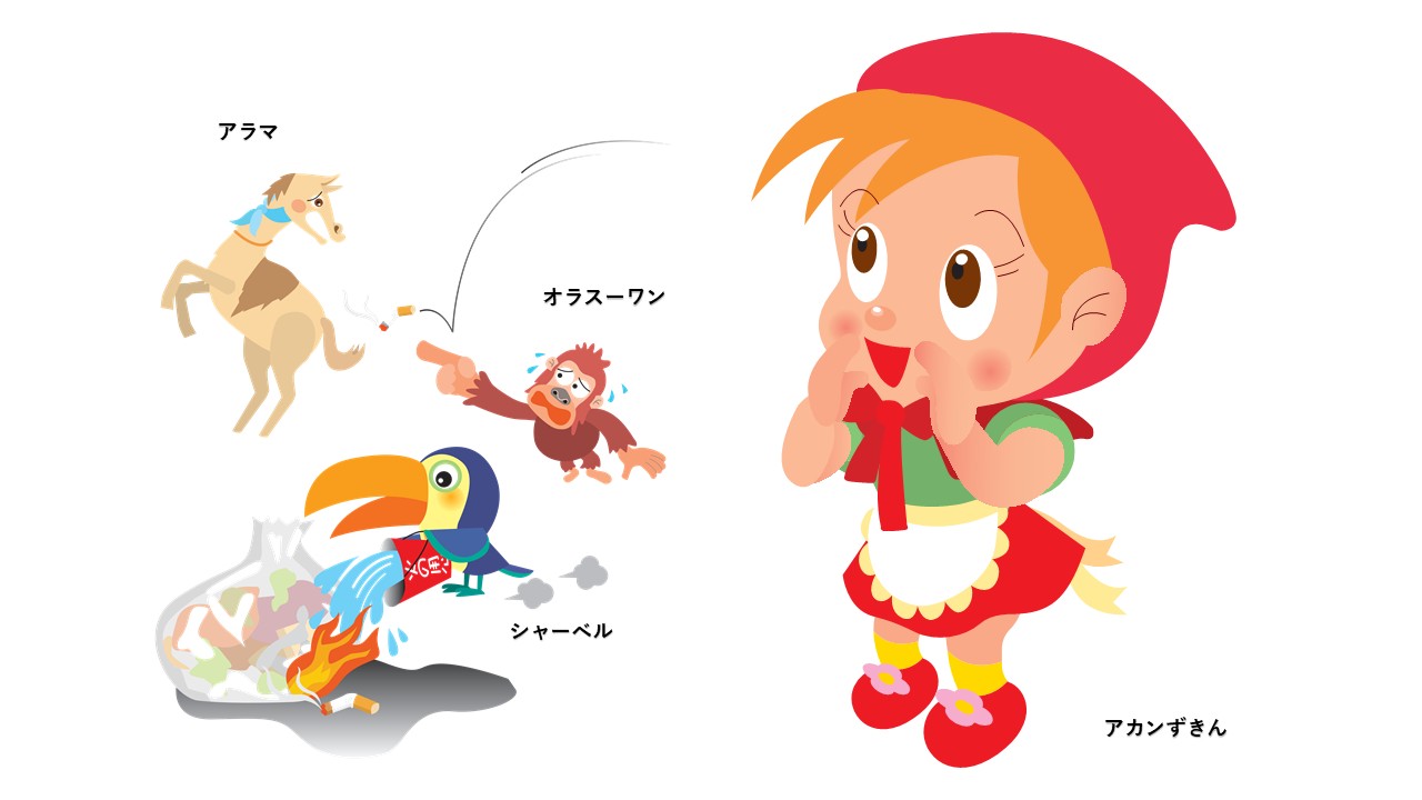 アカンずきんは、大阪が、そして大阪の人が大好き。だから、今日も大阪が暮らしやすいまちであるように、仲間たちとパトロールにお出かけです。路上喫煙を見かけるとボルテージが上がって、「路上喫煙はアカンずきん!」と注意してまわります。