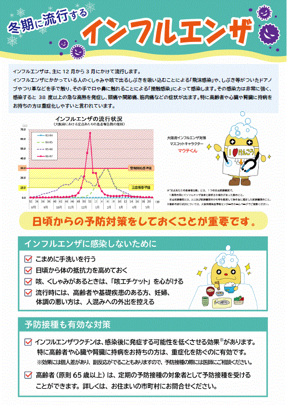 大阪市内の現在の発生状況については、インフルエンザの発生状況(大阪市ホームページ)をご確認ください。