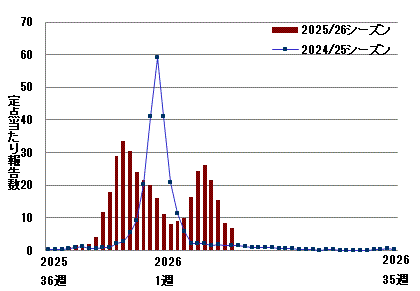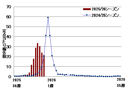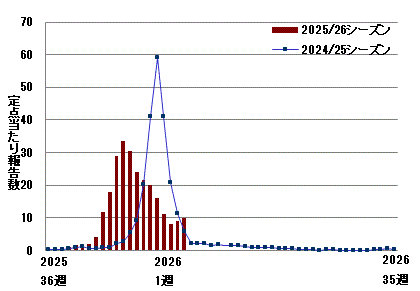 | 流行発生警報 | 30(開始基準値) 10(終息基準値) |