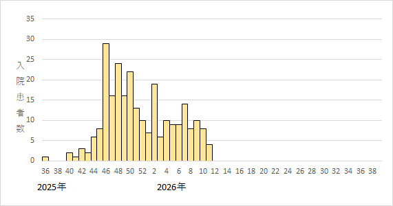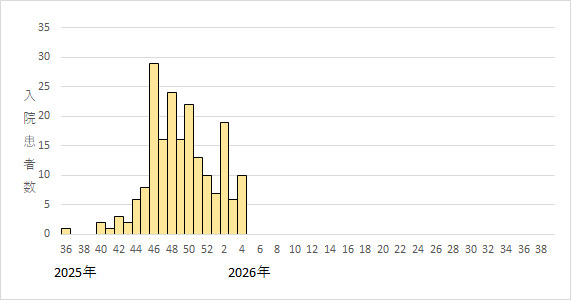 インフルエンザによる入院患者数、重症者数の傾向を把握することを目的に、基幹定点医療機関からの報告を集計しています。