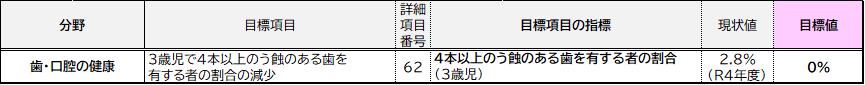 | う歯のない児の割合(%) | 77.5 | 80.8 | 84.7 | 90.5 |