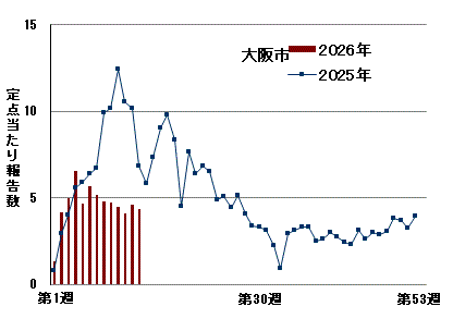 2026年大阪市感染性胃腸炎(PDF形式, 27.18KB)定点当たり報告数