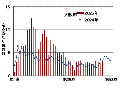 2025年大阪市感染性胃腸炎(PDF形式, 28.62KB)定点当たり報告数