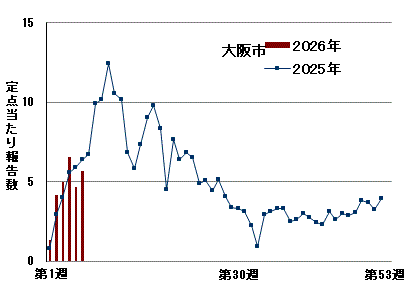 2026年大阪市感染性胃腸炎(PDF形式, 26.88KB)定点当たり報告数