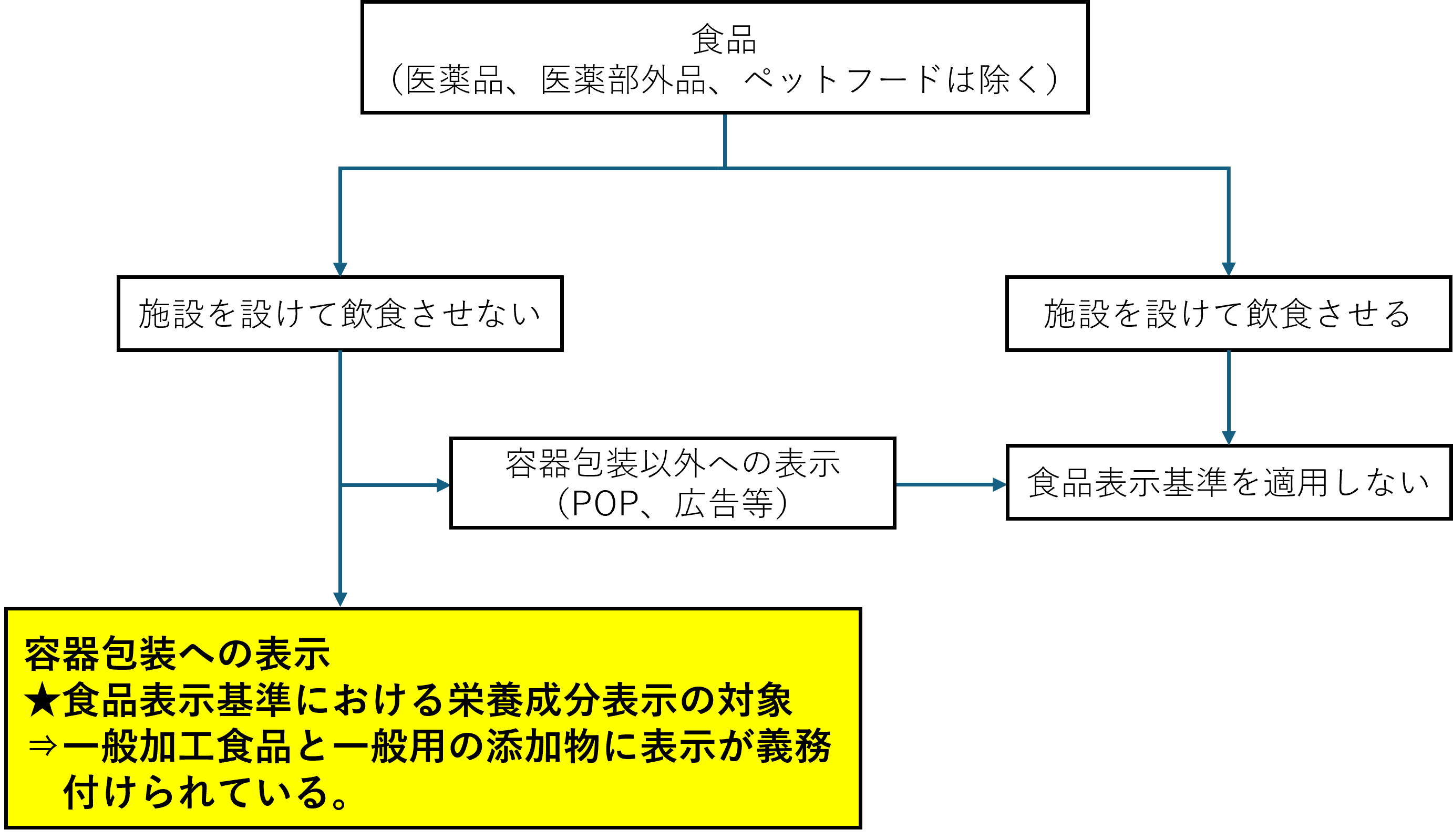 食品表示基準は、食品関連事業者等が、加工食品、生鮮食品又は添加物を販売する場合(設備を設けて飲食させる場合を除く。)について適用されます。