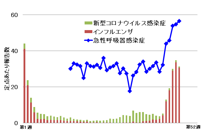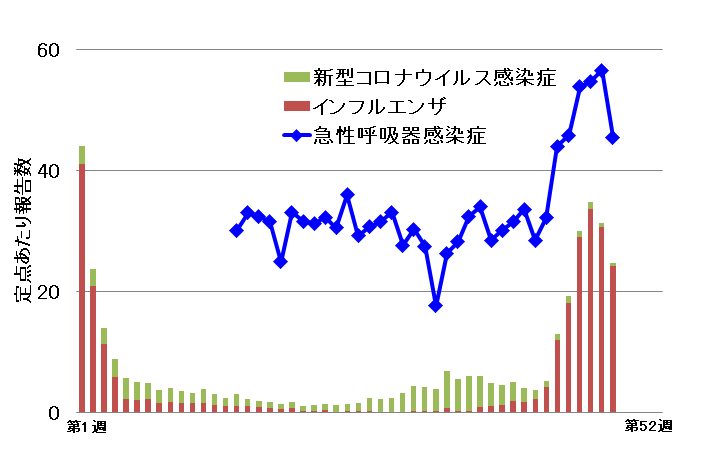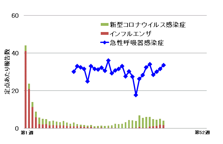 定点医療機関:急性呼吸器感染症について患者数の報告を依頼している医療機関
