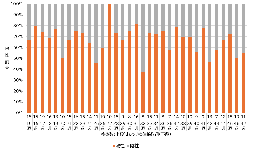 注)20項目いずれかのウイルスが検出されたものを陽性、20項目いずれのウイルスも検出されていないものを陰性としています。