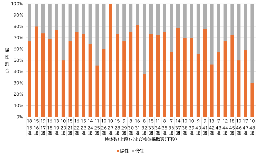 注)報告週ではなく検体採取日の週で集計しています。