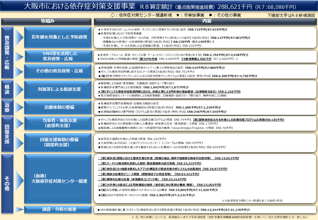 依存症対策支援事業(令和8年度)(PDF形式, 810.90KB)令和8年度 大阪市における依存症対策支援事業